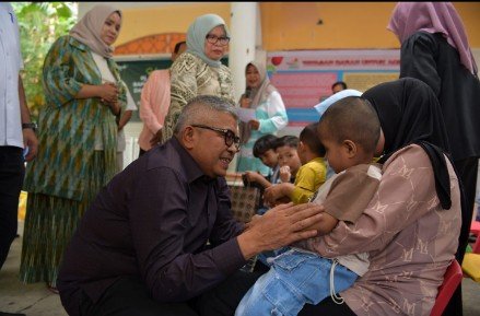 Selain menyerahkan bantuan sembako, Pj Gubernur Bustami juga menyapa langsung anak-anak kanker dan penderita thalasemia ke tempat mereka duduk. Bahkan beberapa anak digendong dan dicium dengan penuh kasih sayang oleh orang nomor satu di Aceh itu.
