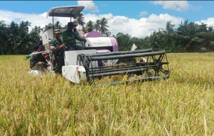 Babinsa Lamtamot Turun Tangan Dampingi Petani Panen Padi