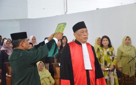 Banda Aceh – Dr Suharjono, Ketua Pengadilan Tinggi (KPT) Banda Aceh setelah memimpin upacara peringatan Hari Sumpah Pemuda ke-96, melakukan pengambilan sumpah dan pelantikan Abdul Azis, MH sebagai Wakil Ketua PT Banda Aceh menggantikan Isnurul Syamsul Arief yang mutasi menjadi WKPT Pontianak, Kalimantan Barat.