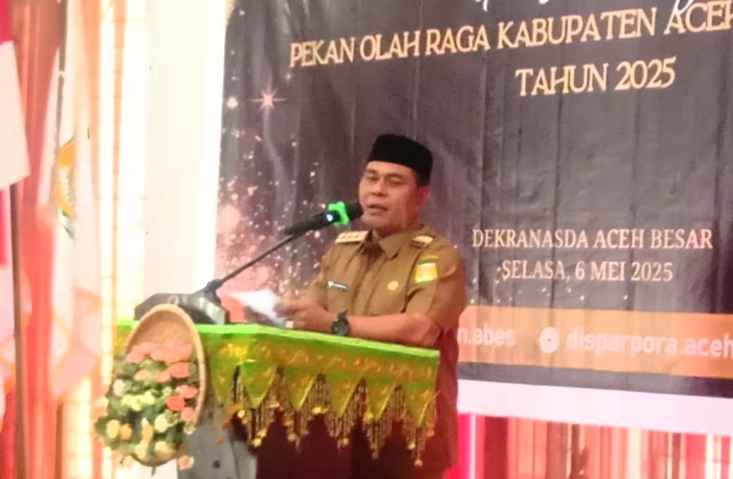 Aceh Besar – Semua kegiatan olahraga pada ajang pertandingan atau perlombaan, bagi para atlit dalam berbusana wajib menutup aurat, baik laki-kaki maupun perempuan. Kemudian jadwal pertandingan harus disesuaikan, jangan bertepatan dengan waktu-waktu shalat, sehingga para penonton dan pemain dapat melaksanakan ibadah tepat waktu. H. Muharram juga minta kepada pelaksana kegiatan olahraga untuk menghindari KKN dalam pengelolaan olahraga, khususnya nepotisme pada tahap seleksi atlit. Pemilihan atlit wajib mengutamakan prestasi, jangan karena kedekatan. Demikian disampaikan Bupati Aceh Besar H. Muharram Idris dalam sambutannya pada acara Pengukuhan Pengurus BAPOPSI (Badan Pembina Olahraga Pelajar Seluruh Indonesia) Kabupaten Aceh Besar periode 2025-2029 dan Launching Pelaksanaan PORKAB (Pekan Olahraga Aceh Besar), berlangsung di Dekranasda Aceh Besar, Gampong Gani Ingin Jaya, Selasa, 06/05/2025.
