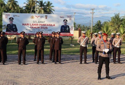 Polres Pidie Jaya menyelenggarakan upacara bendera peringatan Hari Lahir Pancasila Tahun 2025, sebagai wujud penghormatan terhadap dasar ideologi bangsa sekaligus momen untuk memperkuat nilai-nilai kebangsaan di lingkungan kepolisian.