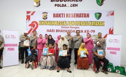 Banda Aceh — Dalam rangka menyambut Hari Bhayangkara ke-79 tahun 2025, Polda Aceh melalui Biddokkes dan Rumah Sakit Bhayangkara menggelar bakti kesehatan (bakkes) berupa operasi katarak dan khitanan massal secara gratis bagi masyarakat, Selasa, 24 Juni 2025.