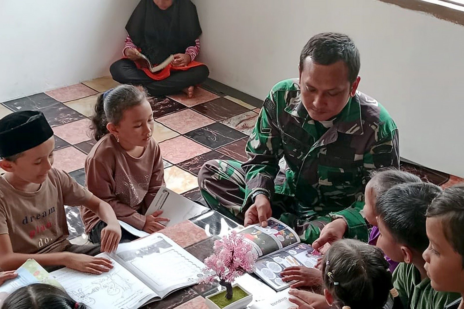 Momen sederhana itu justru menghadirkan suasana hangat. Di tengah tumpukan buku bacaan, Serda Eko duduk berbaur dengan anak-anak, membimbing mereka mengeja kata demi kata, sekaligus mendorong semangat belajar. “Membaca adalah kunci ilmu. Kalau sejak kecil anak-anak sudah dekat dengan buku, ke depan mereka bisa jadi generasi yang cerdas dan berdaya saing,” ucap Serda Eko dengan senyum ramah.