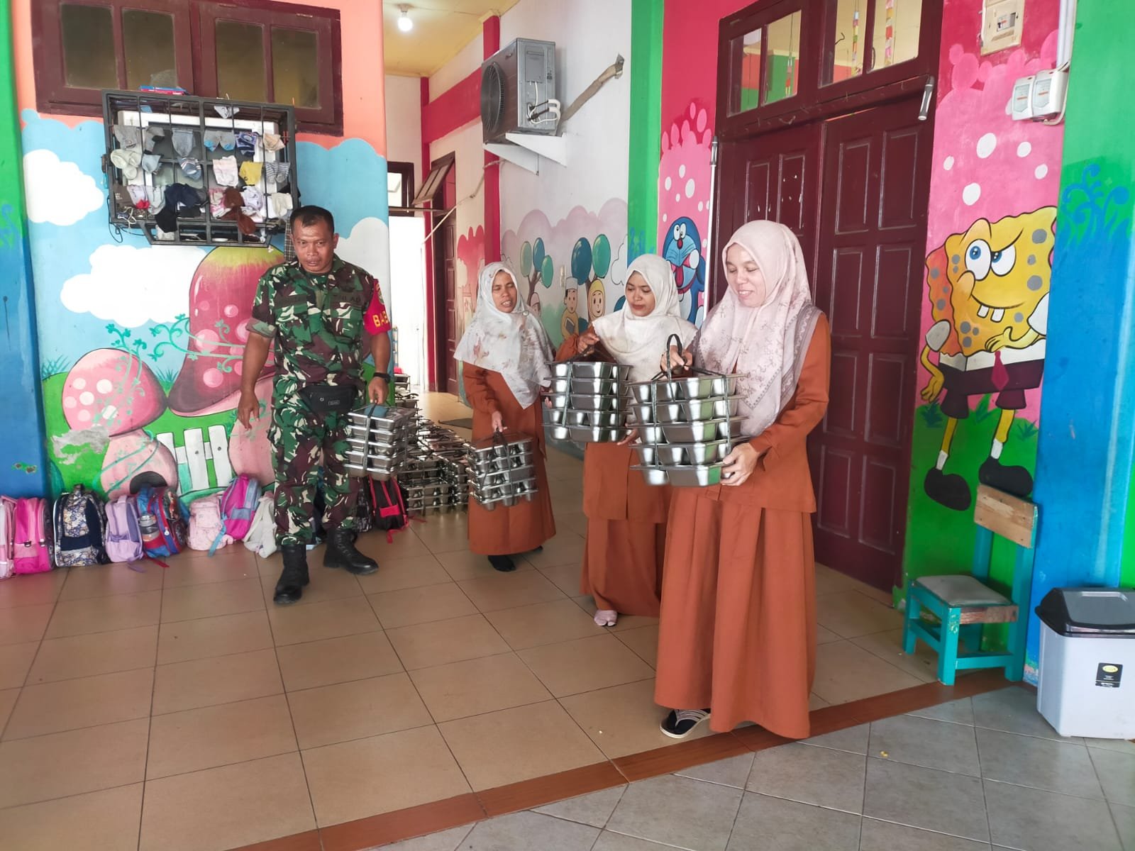 Dengan penuh kesabaran, Serka Harmazan memastikan setiap anak mendapatkan jatah makan bergizi yang telah disiapkan. Kehadirannya bukan hanya sebatas pengawasan, tetapi juga sebagai bentuk dukungan TNI terhadap program pemerintah dalam meningkatkan kesehatan dan tumbuh kembang anak sejak dini.