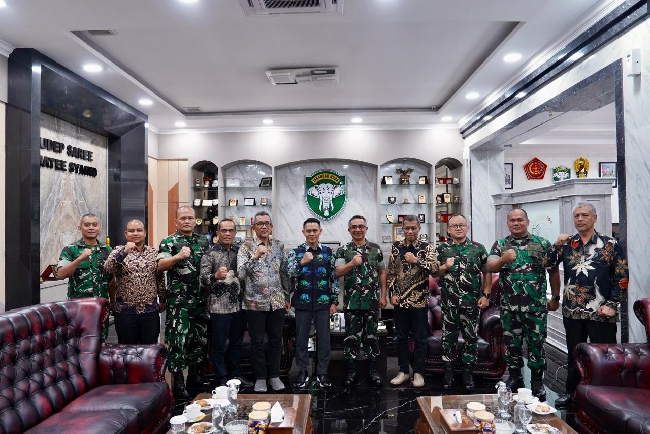 Banda Aceh – Panglima Komando Daerah Militer Iskandar Muda (Pangdam IM), Mayor Jenderal TNI Joko Hadi Susilo, S.I.P., menerima audiensi dari Kepala Kantor Wilayah (Kakanwil) Badan Pertanahan Nasional (BPN) Provinsi Aceh, Dr. Arinaldi, S.SiT., S.H., M.M., beserta jajaran stafnya. Pertemuan berlangsung di ruang kerja Pangdam IM, Banda Aceh, pada Kamis (02/10/2025).