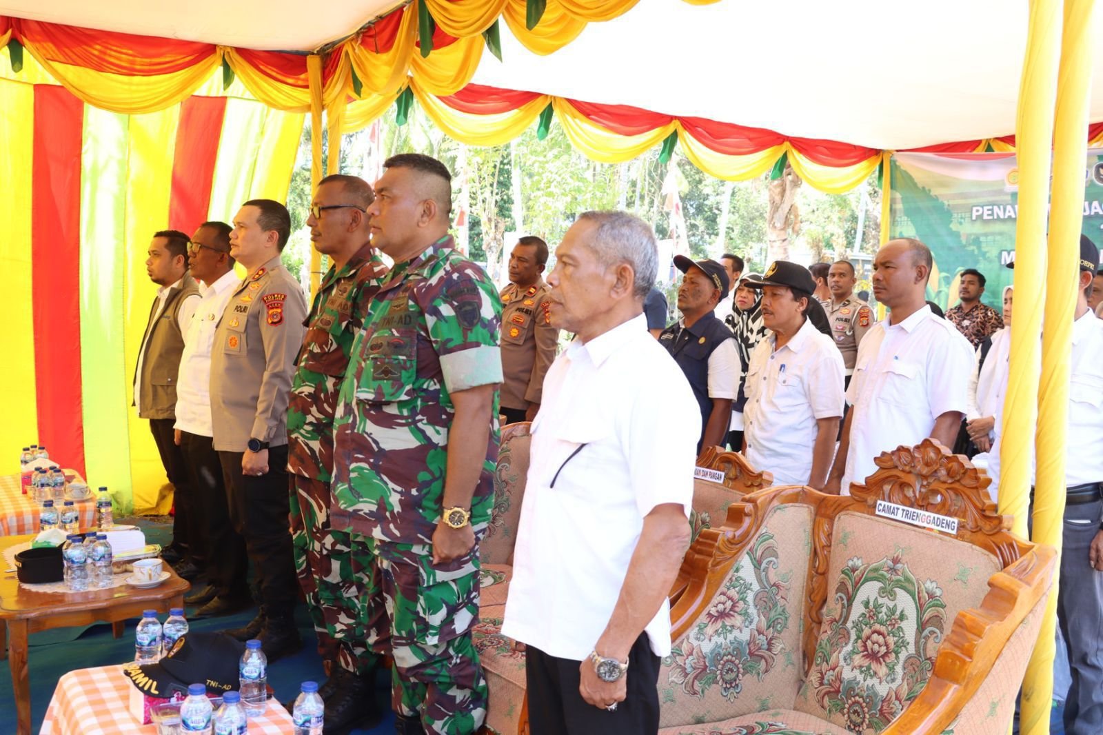 Hadir dalam kegiatan tersebut Kapolres Pidie Jaya AKBP Ahmad Faisal Pasaribu, S.H., S.I.K., M.H., Bupati Pidie Jaya yang diwakili Asisten II Bahron Bakti, S.T., M.T., Pabungdim 0102 Pidie Mayor Inf. Ruslan, pimpinan Bulog Cabang Sigli Ahmad Fadly, S.E., perwakilan Dinas Pertanian dan Perkebunan Kabupaten Pidie Jaya, para pejabat utama Polres, Kapolsek, Danramil, penyuluh pertanian, kelompok tani, perangkat Gampong Meue, serta masyarakat sekitar.