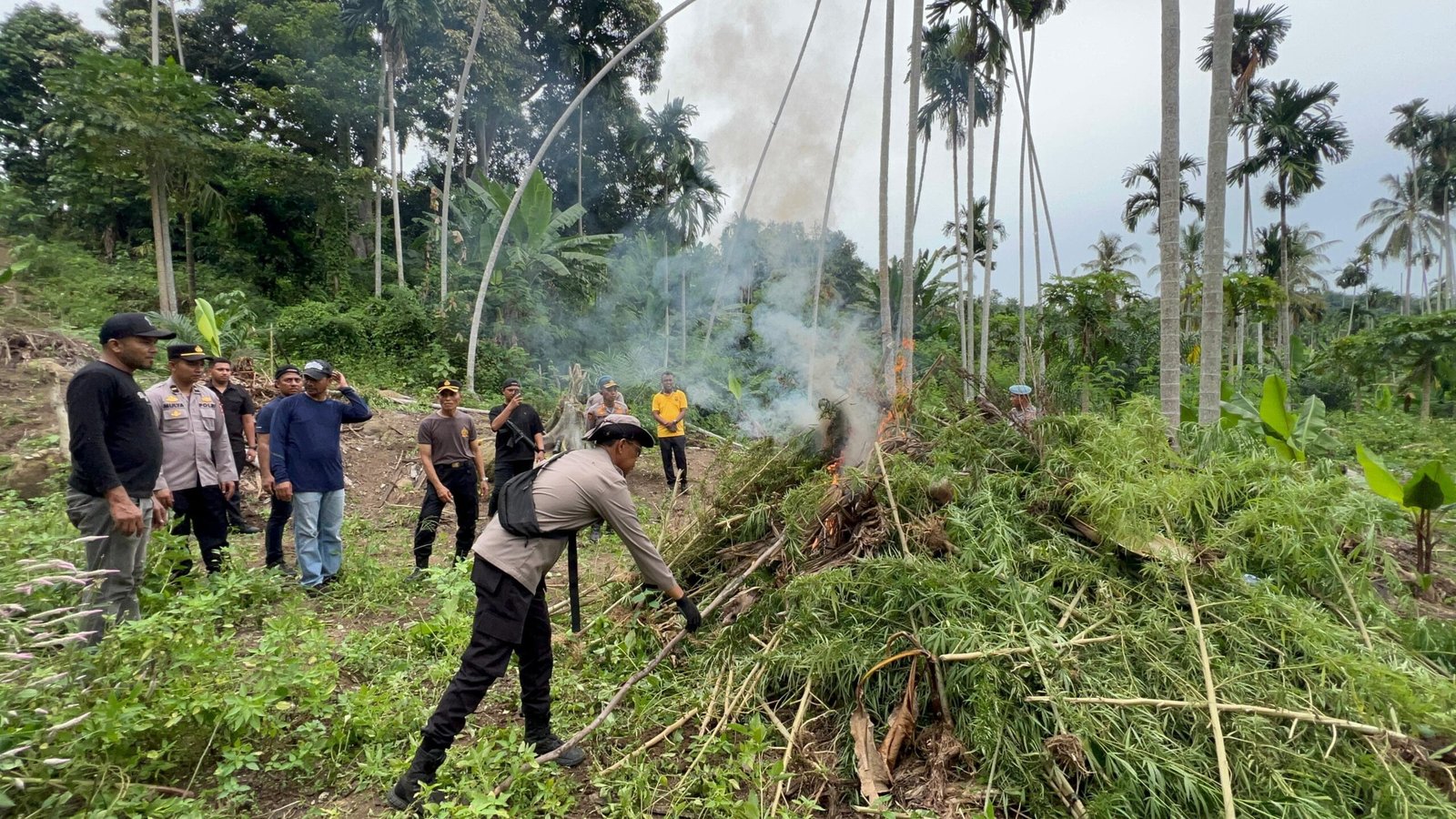 “Keseluruhan terdapat 4.200 batang ganja di ladang tersebut. Namun, yang dimusnahkan sebanyak 4.195 batang, sementara lima batang kami bawa ke Polres sebagai barang bukti untuk keperluan uji laboratorium,” kata Tuschad.