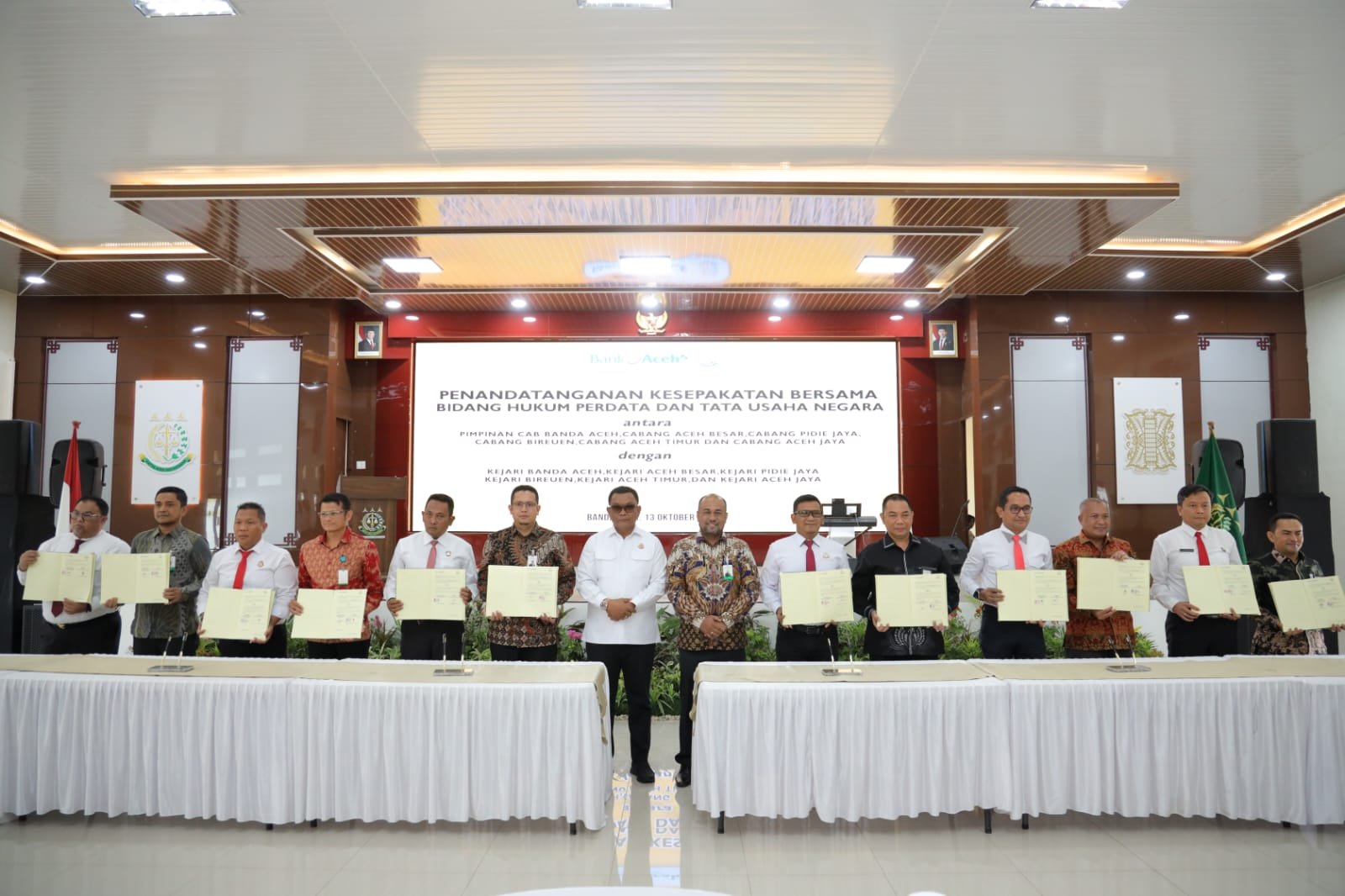Banda Aceh – PT Bank Aceh Syariah (BAS) memperkuat aspek hukum dan perlindungan nasabah dengan menandatangani Memorandum of Understanding (MoU) Bidang Hukum Perdata dan Tata Usaha Negara bersama Kejaksaan Tinggi (Kejati) Aceh.