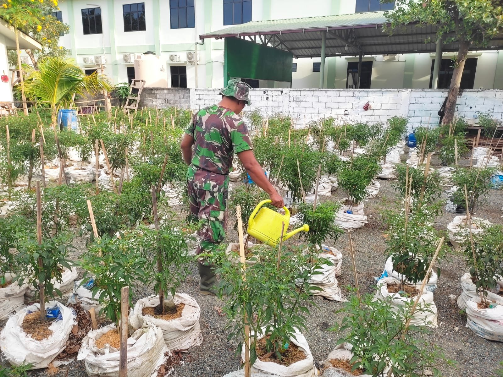 Dengan adanya kegiatan perawatan rutin tersebut, diharapkan tanaman cabai yang dibudidayakan di lahan belakang Makodim dapat tumbuh subur dan memberikan hasil panen yang baik, serta menjadi contoh bagi masyarakat sekitar untuk turut mengoptimalkan lahan yang dimiliki demi mendukung kemandirian pangan.