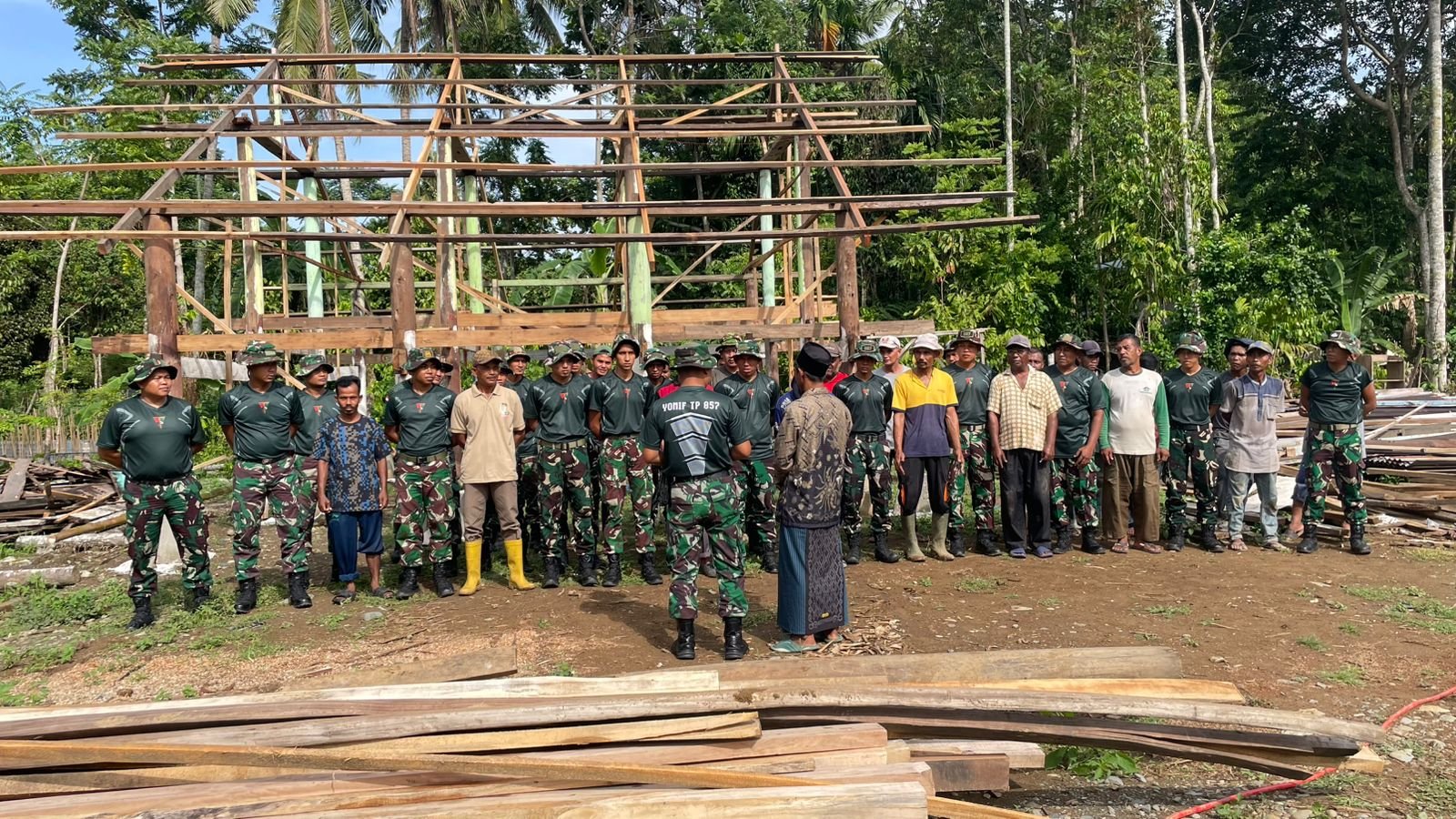 Pidie – Dalam rangka memperkokoh kemanunggalan TNI dengan rakyat serta mendukung pembangunan fasilitas keagamaan di wilayah binaan, personel Kompi Senapan C Yonif Teritorial Pembangunan (TP) 857/GG melaksanakan kegiatan Karya Bhakti TNI di Dayah Jihadul Fata Al-Aziziyah, yang berlokasi di Gampong Pante Kulu, Kecamatan Titeue, Kabupaten Pidie. Selasa (14/10/25)