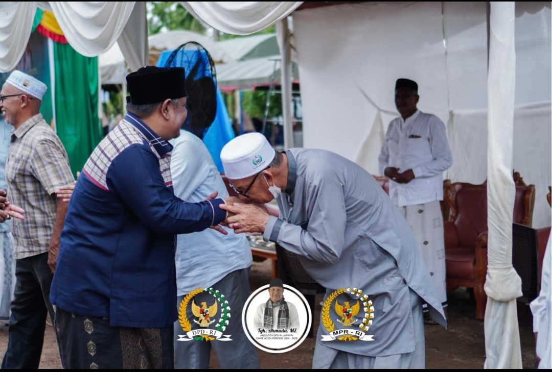 Aceh Besar – Anggota DPD RI asal Aceh, Tgk. Ahmada MZ, menghadiri acara Maulidurrasul dan peresmian Dayah Al-Bahjatul Huda di Gampong Aneuk Batee, Kecamatan Suka Makmur, Kabupaten Aceh Besar, pada Minggu (19 Oktober 2025).