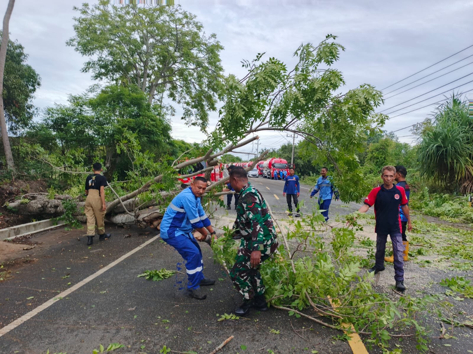 “Kami bersama petugas Damkar dan warga bergotong royong menyingkirkan pohon tumbang agar jalan bisa segera dilalui kembali,” ujarnya.