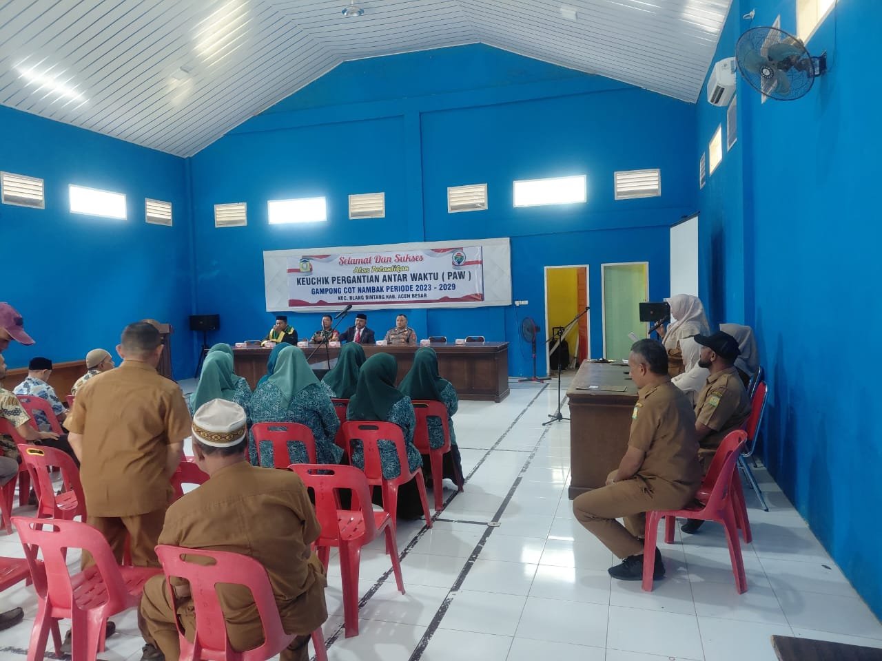 Acara pelantikan tersebut dipimpin langsung oleh Camat Blang Bintang dan dihadiri oleh unsur Forkopimcam, tokoh masyarakat, serta perwakilan lembaga gampong. Suasana kegiatan berlangsung khidmat dan penuh kebersamaan, menandai dimulainya kepemimpinan baru di Gampong Cot Nambak.
