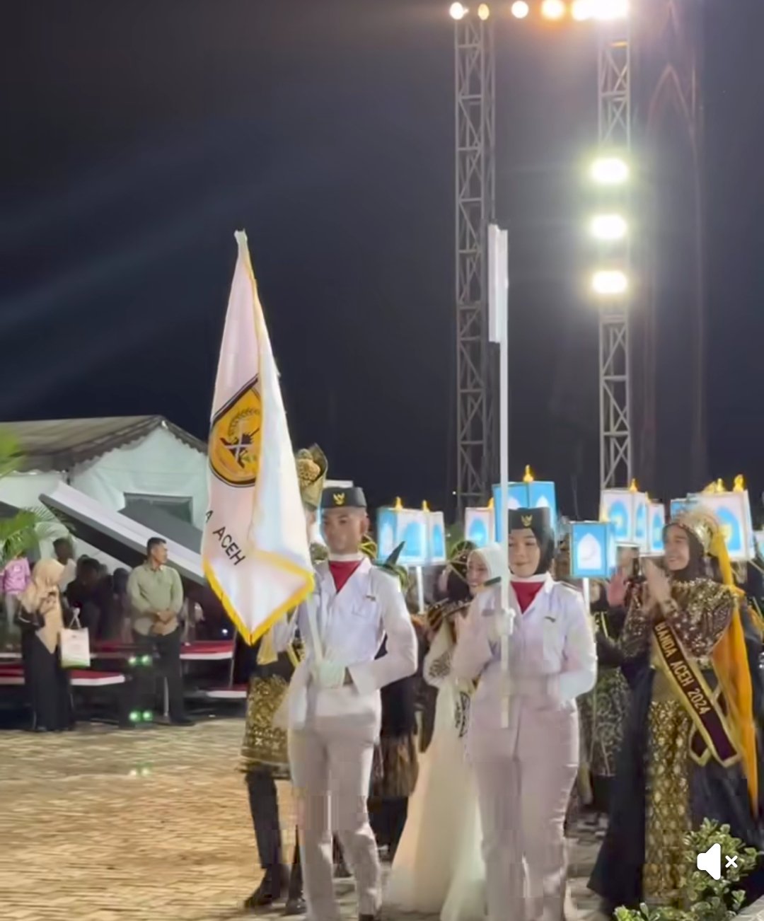 Salah satu momen yang paling mencuri perhatian pada malam pembukaan adalah defile kafilah Kota Banda Aceh. Dengan membawa lampion bertuliskan Asmaul Husna dan obor menyala, para peserta tampil anggun dan penuh semangat, memancarkan nuansa religius dan keislaman yang kental. Penampilan tersebut mendapatkan aplaus meriah dari penonton dan tamu undangan yang memadati arena pembukaan.