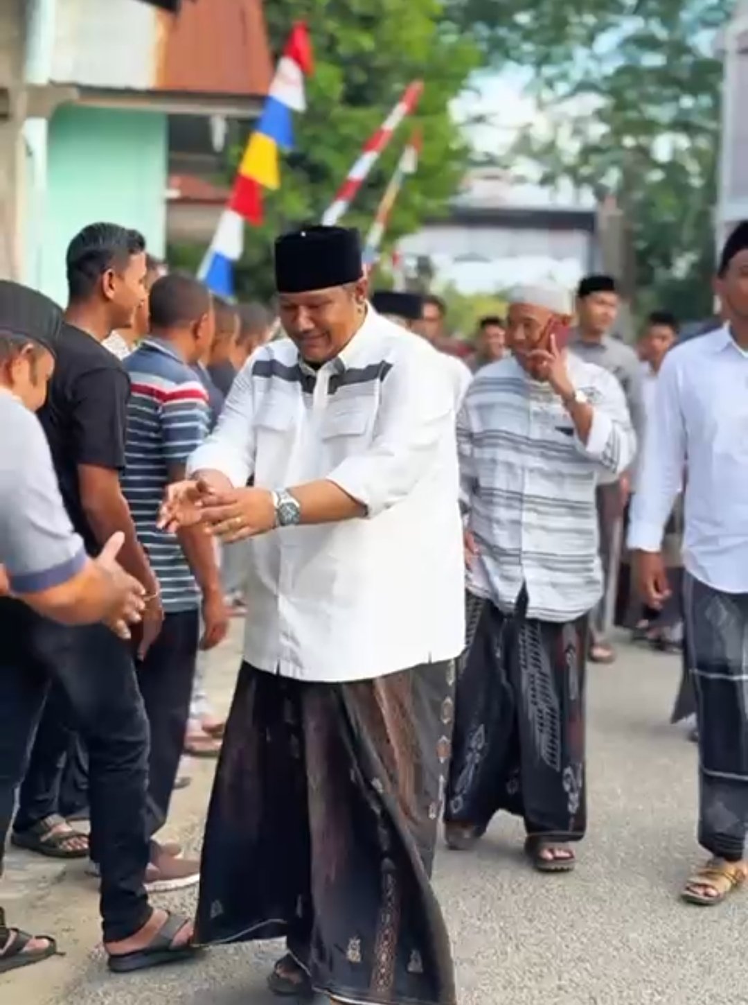 Kehadiran Tgk. Ahmada MZ disambut hangat oleh masyarakat setempat. Dengan mengenakan pakaian putih sederhana dan kopiah hitam, ia terlihat berjalan bersama warga menuju lokasi acara. Senyum ramahnya dan sikap rendah hati membuat suasana semakin akrab dan penuh kehangatan.