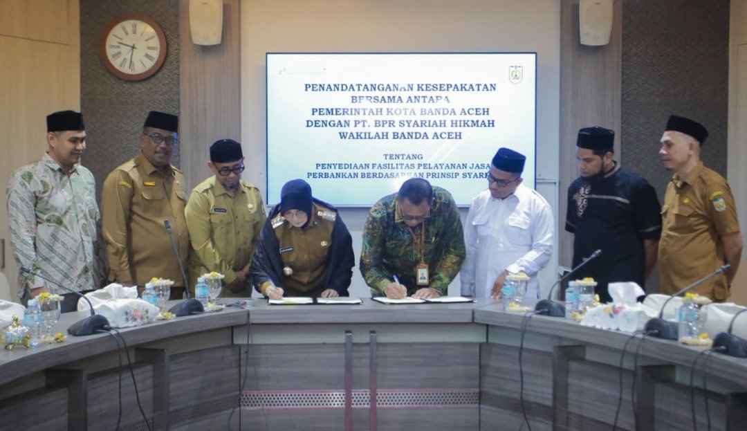 BANDA ACEH | Pemerintah Kota Banda Aceh terus memperkuat komitmennya dalam mendorong sistem keuangan berbasis syariah di daerah. Senin, (03/11/2025), Pemko Banda Aceh secara resmi menandatangani Kesepakatan Bersama dengan PT BPR Syariah Hikmah Wakilah Banda Aceh.