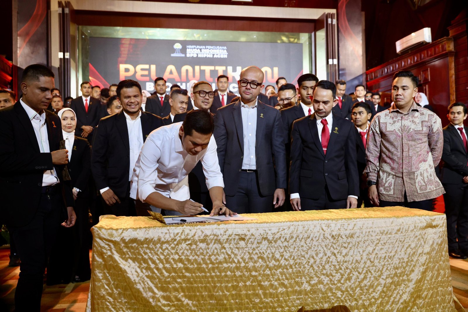 Hal tersebut disampaikan oleh Sekretaris Daerah Aceh M Nasir, saat membacakan sambutan Gubernur Aceh pada pelantikan pengurus Himpunan Pengusaha Muda Indonesia (Hipmi) Aceh periode 2025-2028, di Anjong Mon Mata komplek Meuligoe Gubernur Aceh, Minggu (2/11/2025) malam.