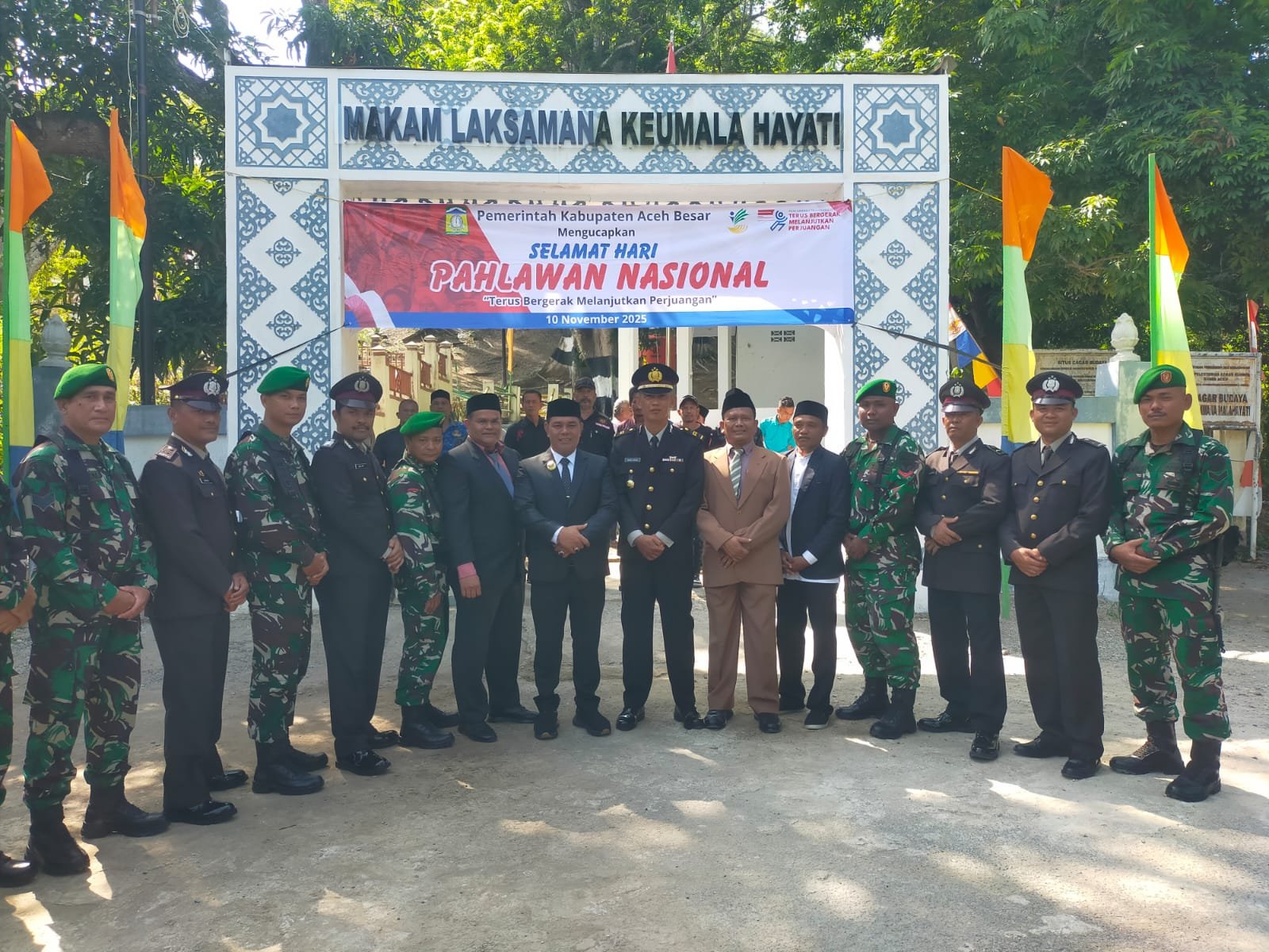 Mesjid Raya — Dalam rangka memperingati Hari Pahlawan Nasional, upacara ziarah dan tabur bunga dilaksanakan secara khidmat di Makam Laksamana Keumalahayati, Gampong Lamreh, Kecamatan Mesjid Raya, Kabupaten Aceh Besar, pada Minggu (09/11/2025).