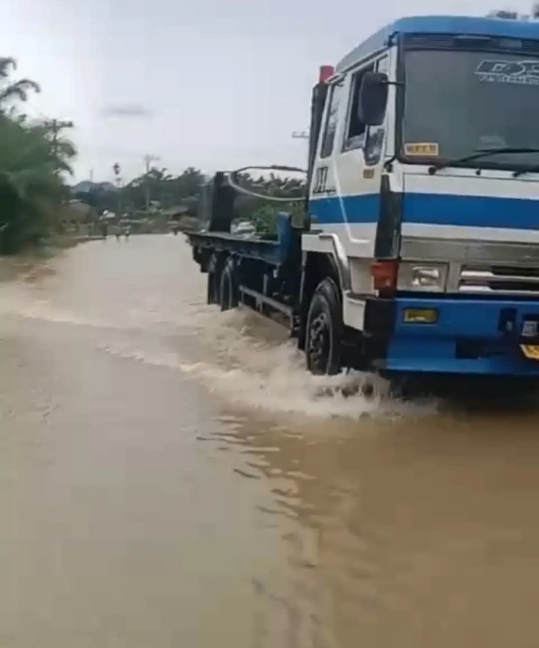 Pantauan di lapangan, air tampak menggenangi badan Jalan Lintas Subulussalam–Aceh Selatan, yang merupakan jalur utama penghubung antar kabupaten di wilayah pantai barat-selatan Aceh. Meskipun genangan cukup lebar, arus lalu lintas kendaraan roda dua maupun roda empat masih bisa melintas dengan aman.