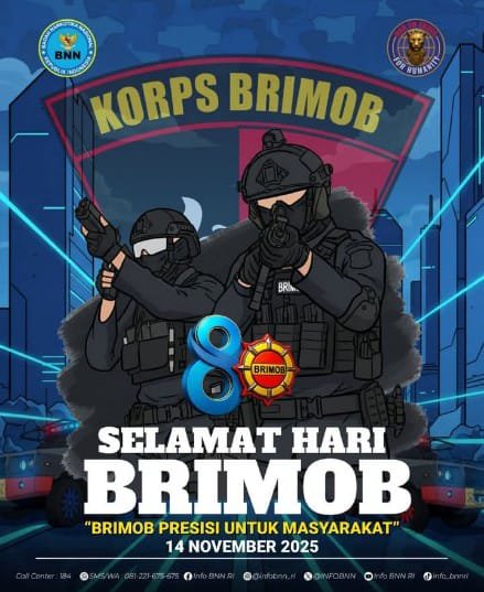 “Kami mengucapkan selamat Hari Brimob ke-80 kepada seluruh Bhayangkara Korps Brimob Polri. Terima kasih atas dedikasi, keberanian, dan pengabdian dalam menjaga keamanan, ketertiban, serta mendukung upaya bersama dalam perang melawan narkoba,” demikian pernyataan Biro Humas dan Protokol BNN.