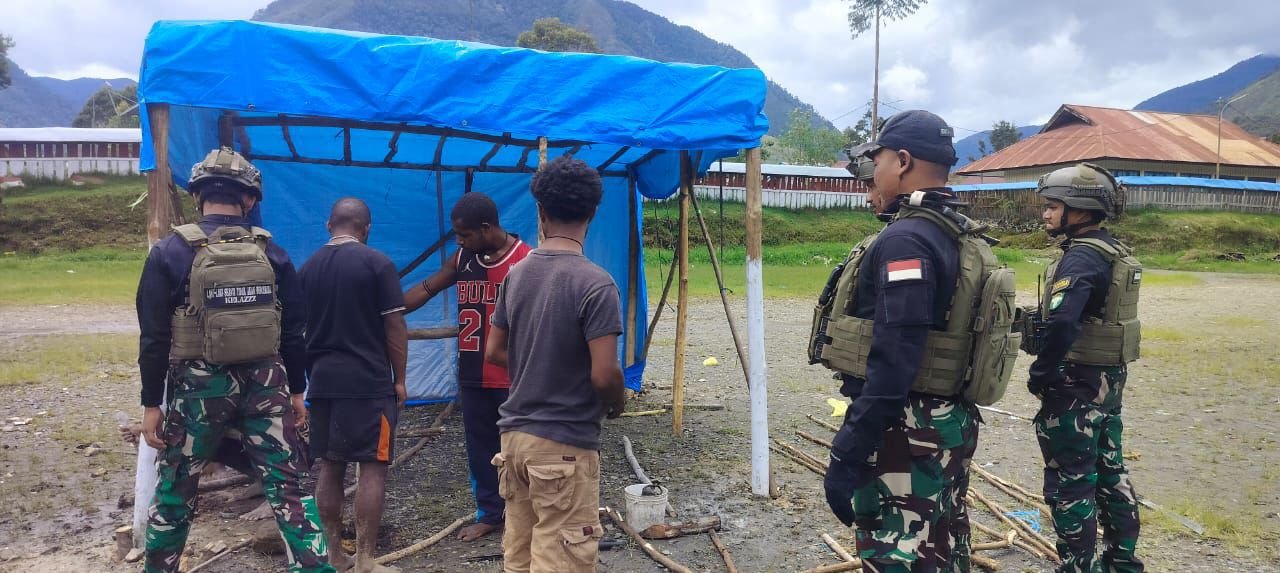 Satgas Yonif 112/DJ Gotong Royong dengan Warga, Sambut Hari Natal di Puncak Jaya