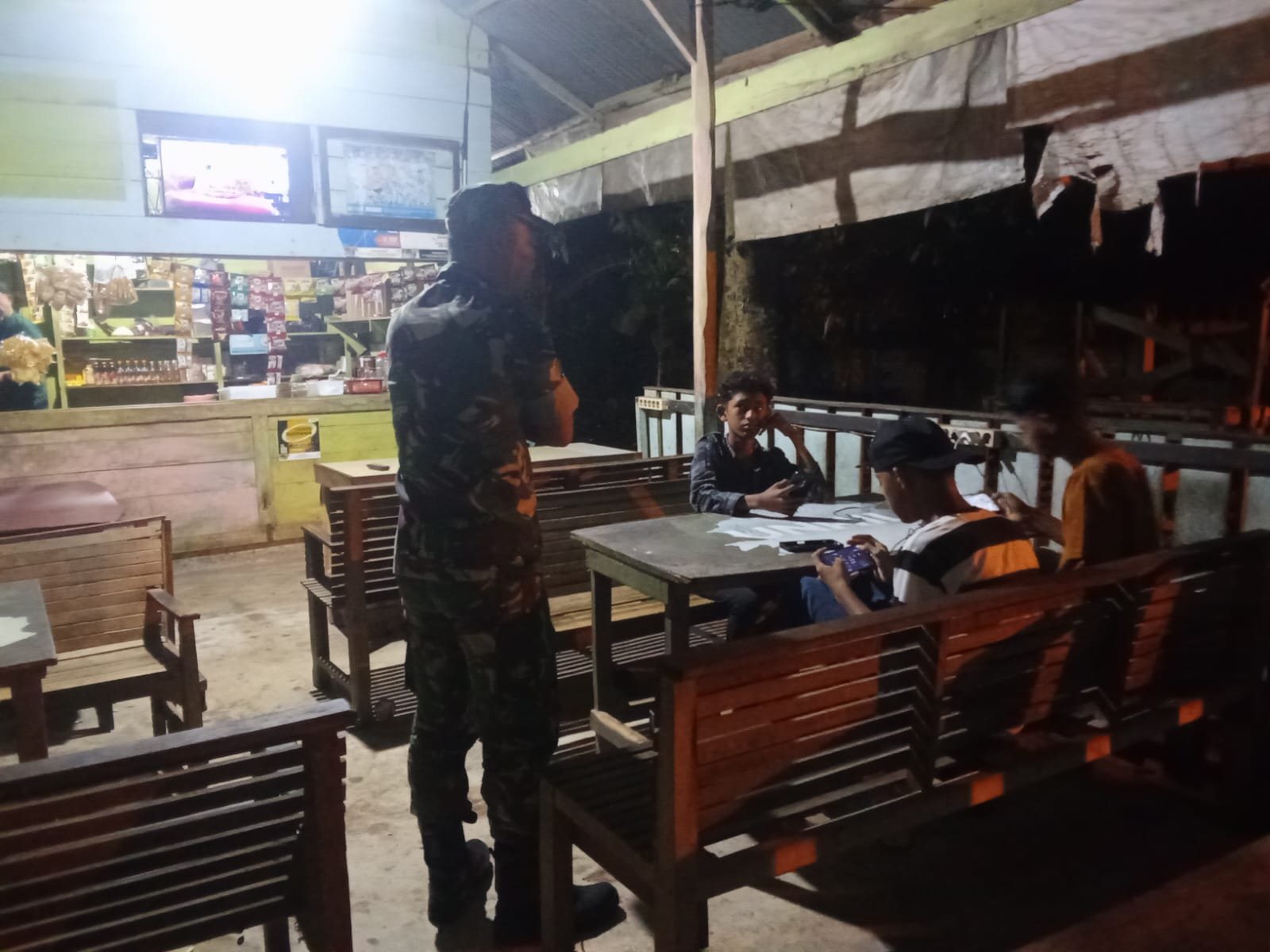 Patroli malam dilakukan dengan menyusuri sejumlah titik yang dianggap rawan, termasuk jalan desa, area pemukiman warga, serta beberapa fasilitas umum yang kerap menjadi lokasi aktivitas masyarakat. Selain memantau situasi, Sertu Andi juga memanfaatkan kesempatan ini untuk berdialog langsung dengan warga yang ditemui.