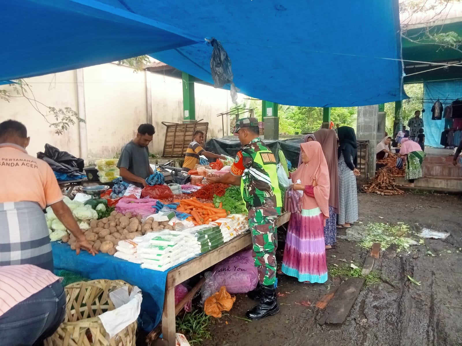 Pasar Keumireu Jadi Sasaran Monitoring, Babinsa Kuta Cot Glie Pastikan Ketersediaan Sembako Aman