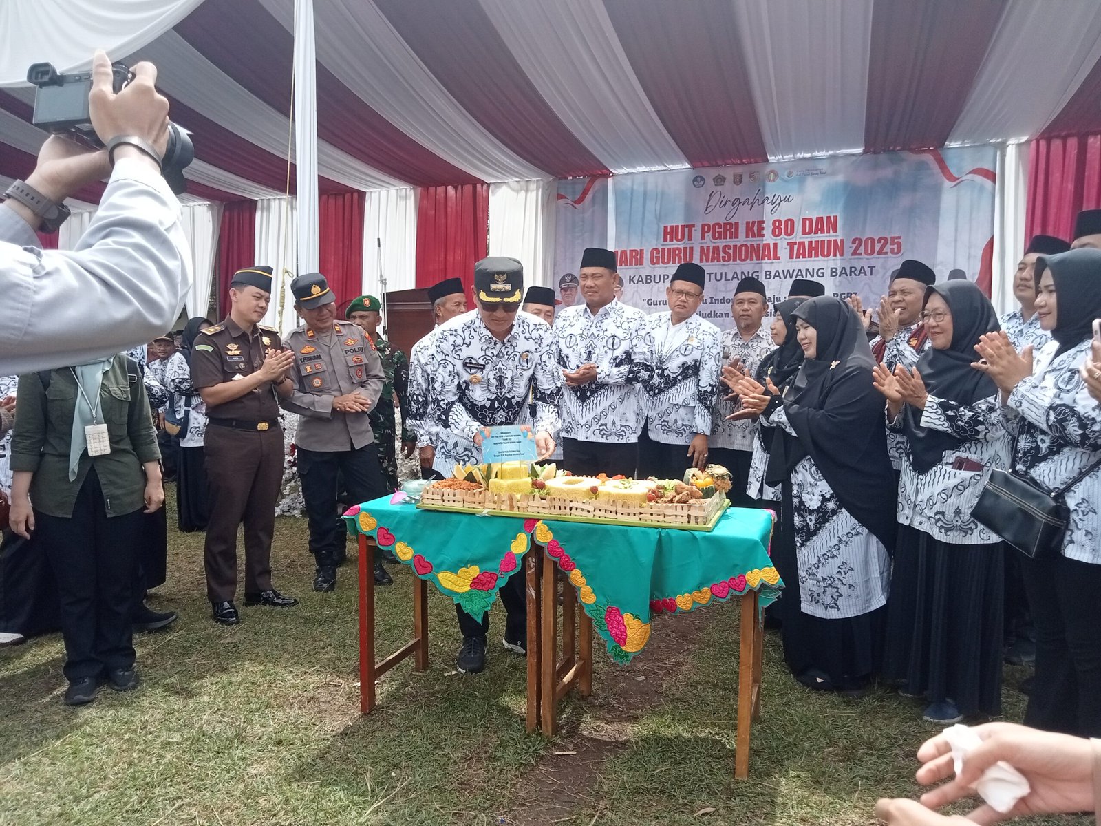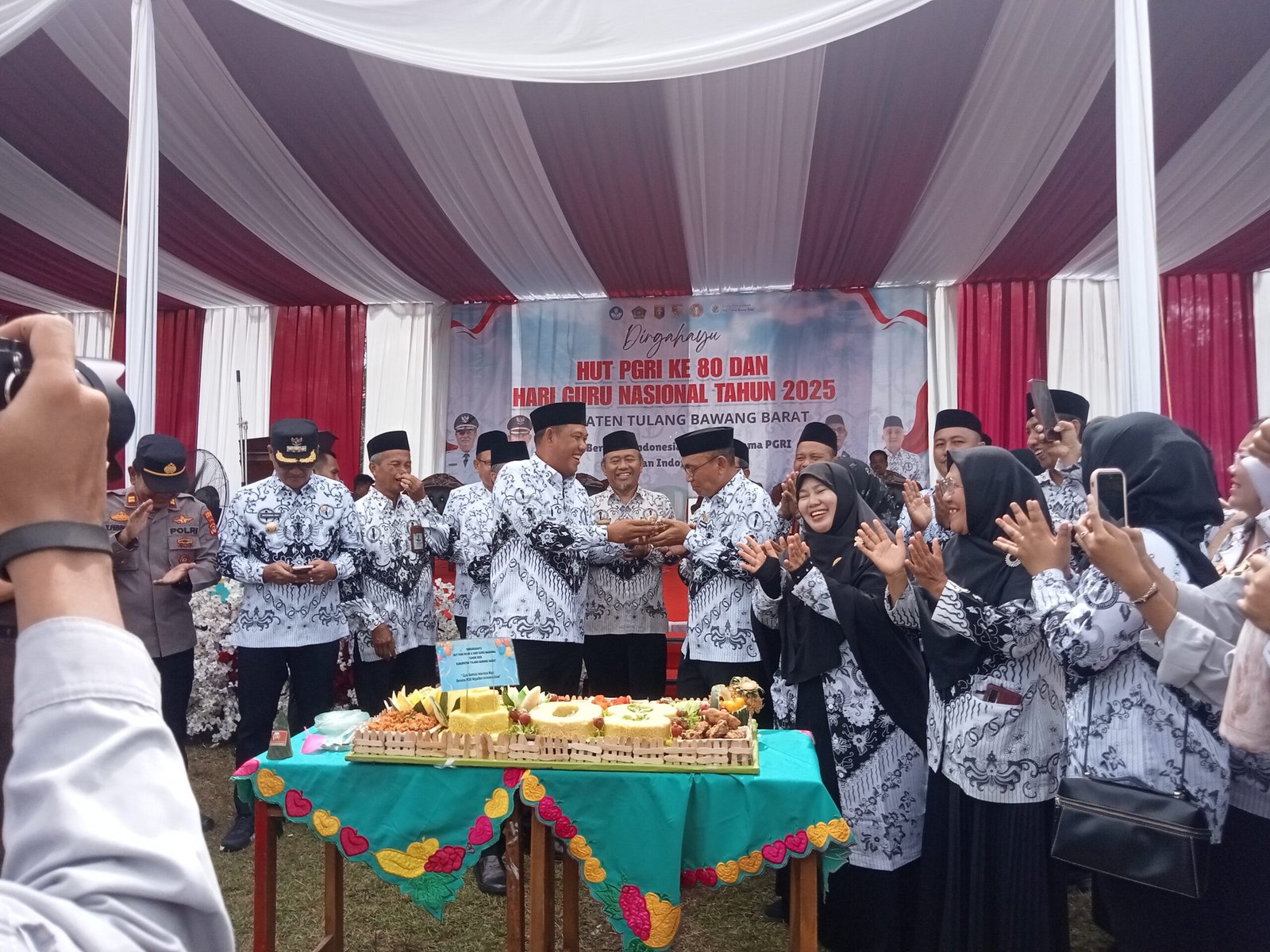 DAILY MAIL INDONESIA.COM—Tulang Bawang Barat, Pemerintah Kabupaten Tulang Bawang Barat menggelar Upacara Peringatan Hari Persatuan Guru Republik Indonesia (PGRI) dan Hari Guru Nasional (HGN) ke-80 Tahun 2025 di Lapangan Marga Kencana, Kecamatan Tulang Bawang Udik, Selasa (25/11/2025).