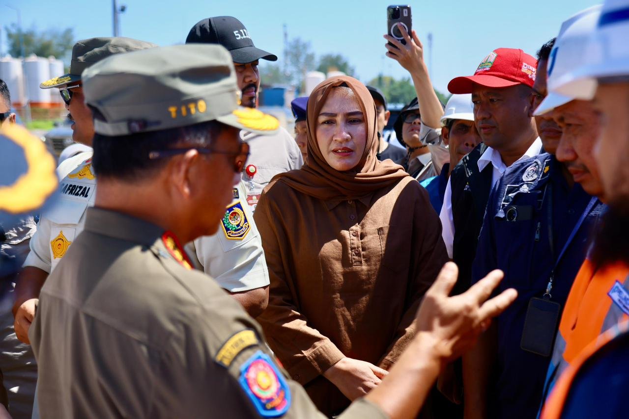 Aceh Utara – Ketua TP PKK Aceh, Marlina Muzakir, mendampingi Menteri Dalam Negeri RI, Tito Karnavian, saat meninjau kesiapan Pelabuhan Krueng Geukueh, Minggu (30/11/2026). Peninjauan ini dilakukan untuk memastikan jalur laut dapat menopang distribusi logistik bagi wilayah terdampak banjir dan longsor di Aceh.
