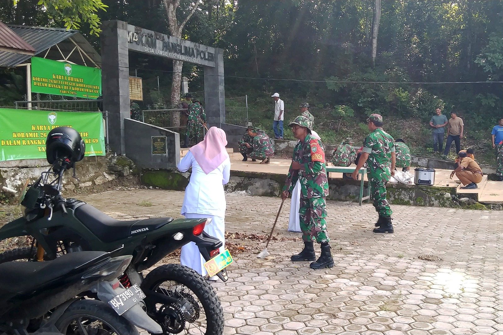 Karya Bakti ini dipimpin langsung oleh Komandan Koramil 26/Kuta Cot Glie, Lettu Cke Ferry Krisna Bagiyanto, bersama dengan Camat Kuta Cot Glie, Mulyono, dan Kepala Kepolisian Sektor (Kapolsek) Kuta Cot Glie, Ipda Safrizal. Kehadiran tiga pilar kepemimpinan kecamatan ini memperlihatkan soliditas dalam menjaga warisan sejarah dan kebersihan lingkungan.