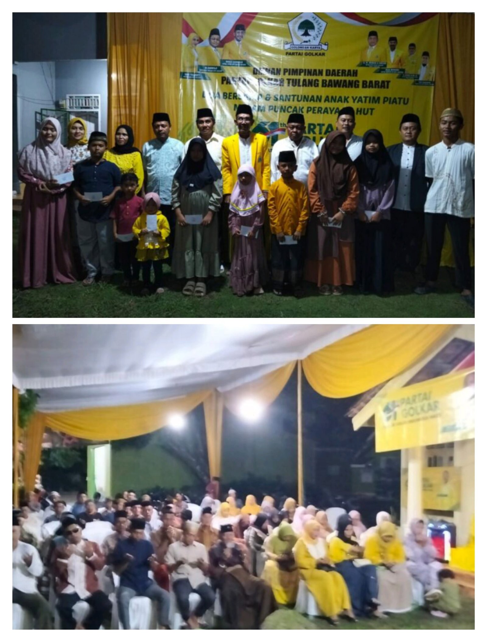 DAILY MAIL INDONESIA.COM—Tulang Bawang Barat– Malam puncak rangkaian kegiatan Hari Ulang Tahun (HUT) Partai Golkar ke- 61 tahun pada 2025, Dewan Pimpinan Daerah (DPD) II Partai Golkar kabupaten Tulang Bawang Barat (Tubaba) melakukan kegiatan Do’a bersama serta memberikan santunan kepada anak yatim pada Jum’at, 05/12/2025 yang di mulai pada pukul 18:00 wib hingga selesai.
