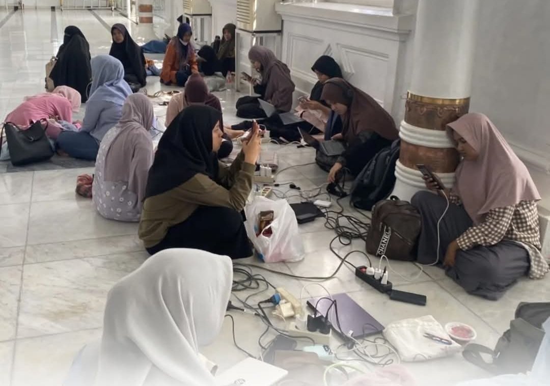 Pantauan di lokasi menunjukkan suasana yang tak biasa. Puluhan warga tampak duduk berkelompok di dalam area masjid, sebagian bersandar di dinding, sebagian lainnya memilih sudut-sudut yang dekat dengan stop kontak. Ponsel, laptop, hingga kabel sambungan listrik terlihat berjajar, menandakan betapa vitalnya listrik bagi aktivitas masyarakat saat ini.