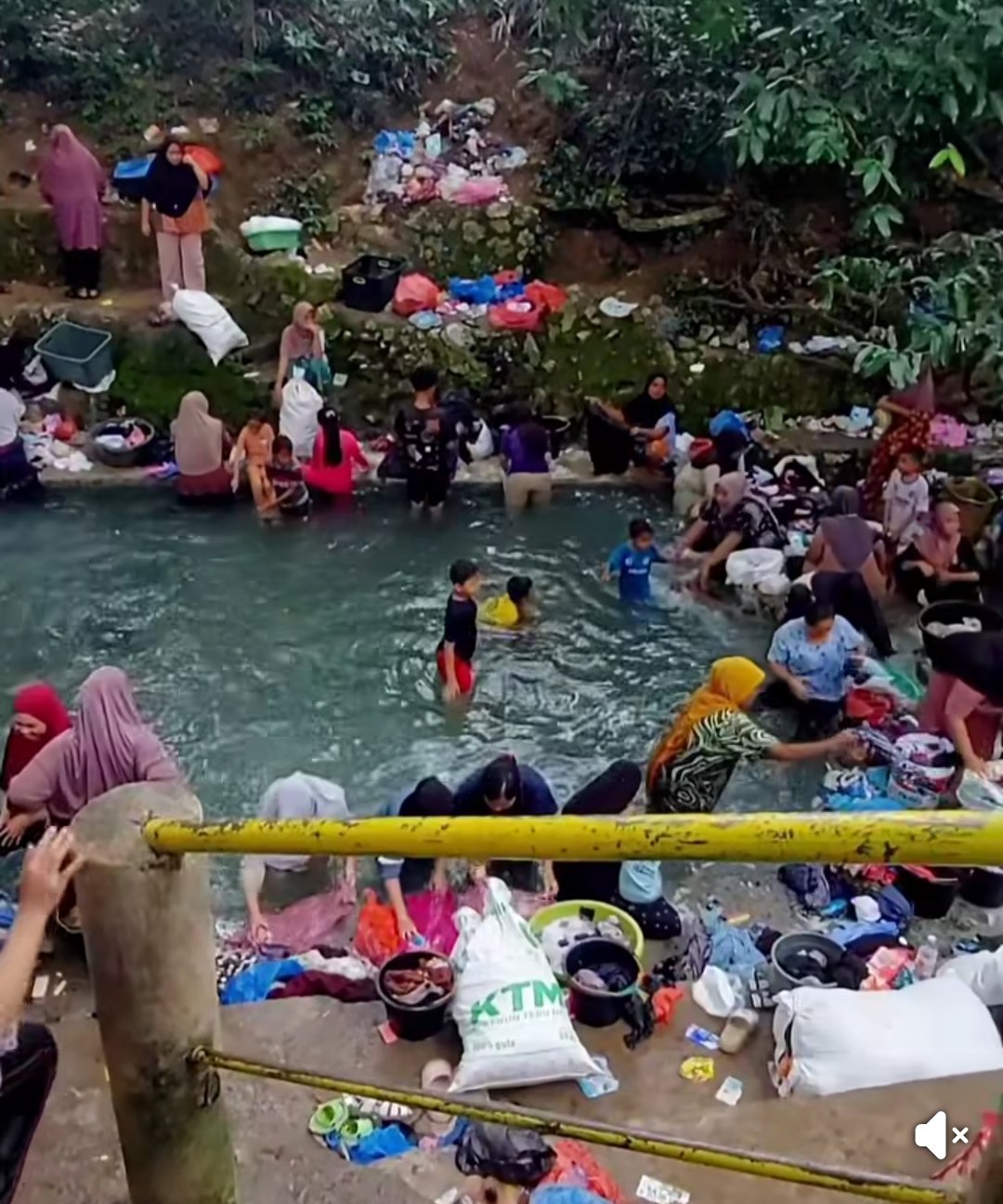Pemandangan ini menjadi potret nyata kesulitan yang dihadapi masyarakat ketika akses air bersih di rumah tidak lagi tersedia. Air sungai yang mengalir jernih menjadi satu-satunya pilihan paling memungkinkan, selain karena kualitas airnya yang masih layak digunakan, juga karena lokasinya mudah dijangkau oleh warga sekitar.