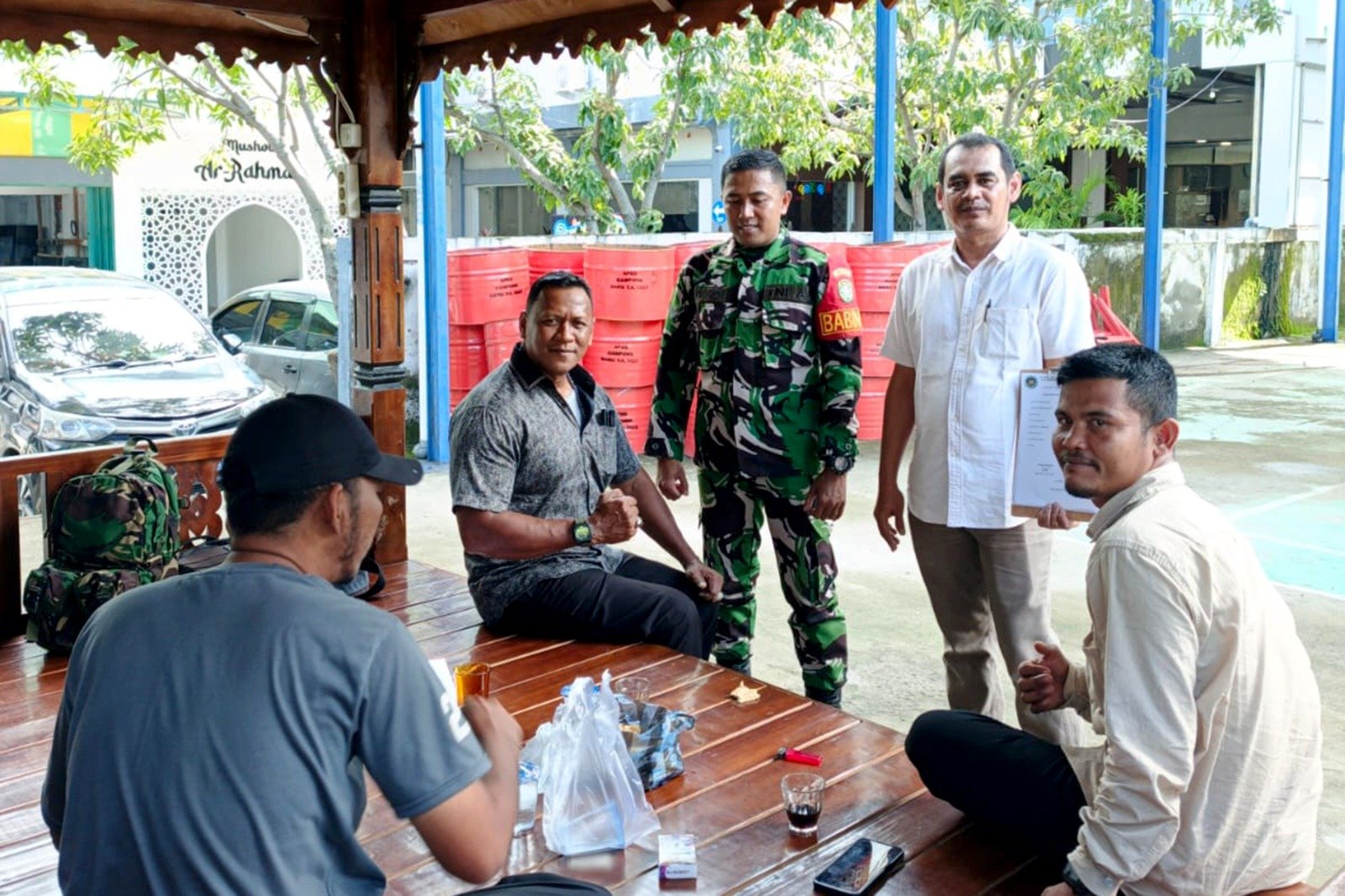 Serda Rico, Babinsa Gampong Kampung Baru dari Koramil 14/Baiturrahman Kodim 0101/Kota Banda Aceh, duduk bersama Bapak Zainal, Kepala Pendistribusian Makan Bergizi Gratis (MBG) Kadin Ateuk Pahlawan. Pertemuan ini dilakukan bukan tanpa alasan; agenda utamanya adalah memvalidasi dan mematangkan data penerima manfaat program Makan Bergizi Gratis (MBG) di wilayah tersebut.