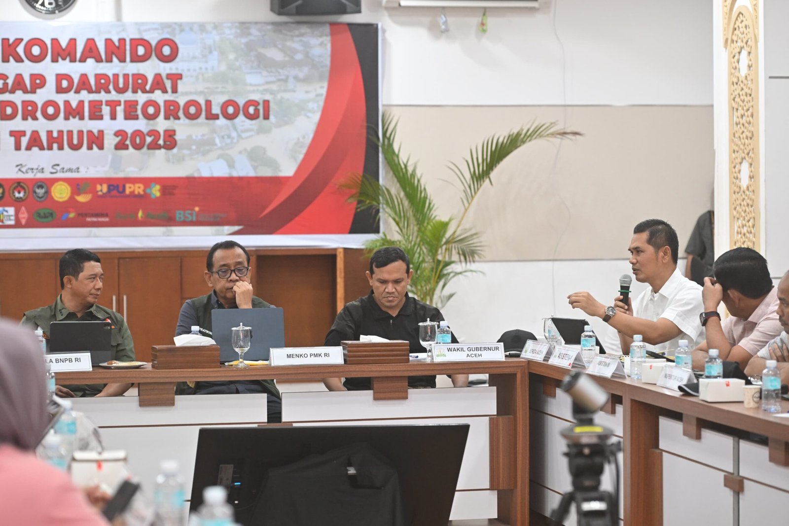 Dalam rapat tersebut, Sekretaris Daerah Aceh M. Nasir turut memaparkan dampak banjir serta langkah penanganan yang telah dilakukan Pemerintah Aceh. Ia menyebutkan, Aceh diarahkan oleh Menko Infrastruktur pada rapat sebelumnya agar mengusulkan dana siap pakai (DSP) untuk percepatan pembersihan wilayah terdampak serta pengembalian warga dari pengungsian ke rumah masing-masing.