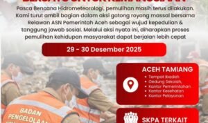 Banda Aceh – Wakil Gubernur Aceh, Fadhlullah, menghadiri acara peringatan 21 Tahun Tsunami Aceh sekaligus Doa Bersama bagi korban musibah banjir dan tanah longsor. Kegiatan berlangsung di Masjid Raya Baiturrahman, Banda Aceh, Jumat (26/12/2025) dan turut dihadiri oleh imam besar Masjid Raya Baiturrahman, Ustadz Abdul Somad, para Alim Ulama, unsur Forkopimda Aceh, Forkopimda Banda Aceh, jajaran SKPA, dan ribuan jamaah.
