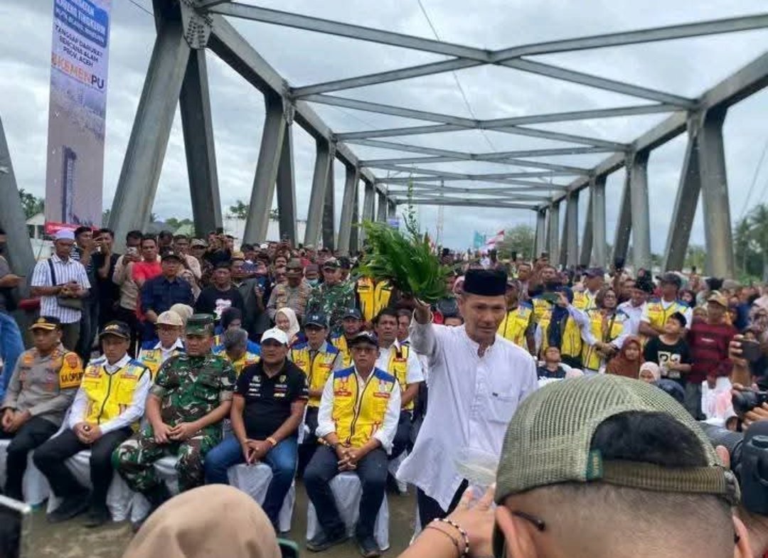 Prosesi peusijuk yang digelar hari ini berlangsung khidmat dan sarat makna. Tradisi adat Aceh tersebut dilakukan sebagai bentuk rasa syukur kepada Allah SWT, sekaligus doa agar jembatan yang kembali difungsikan ini membawa keselamatan, kelancaran, dan keberkahan bagi seluruh pengguna jalan. Sejumlah tokoh masyarakat, unsur pemerintah, serta warga setempat turut hadir menyaksikan prosesi tersebut.