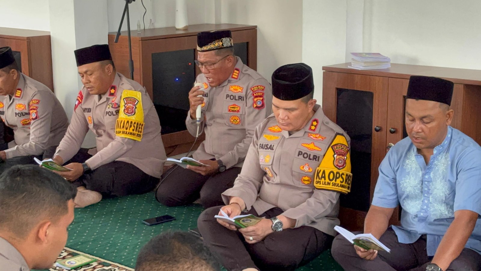 Kegiatan Binrohtal tersebut diisi dengan pembacaan Al-Qur’an Surat Yasin, zikir, serta doa bersama yang dipimpin oleh Kasi Humas Polres Pidie Jaya AKP Mahruzar Hariadi.