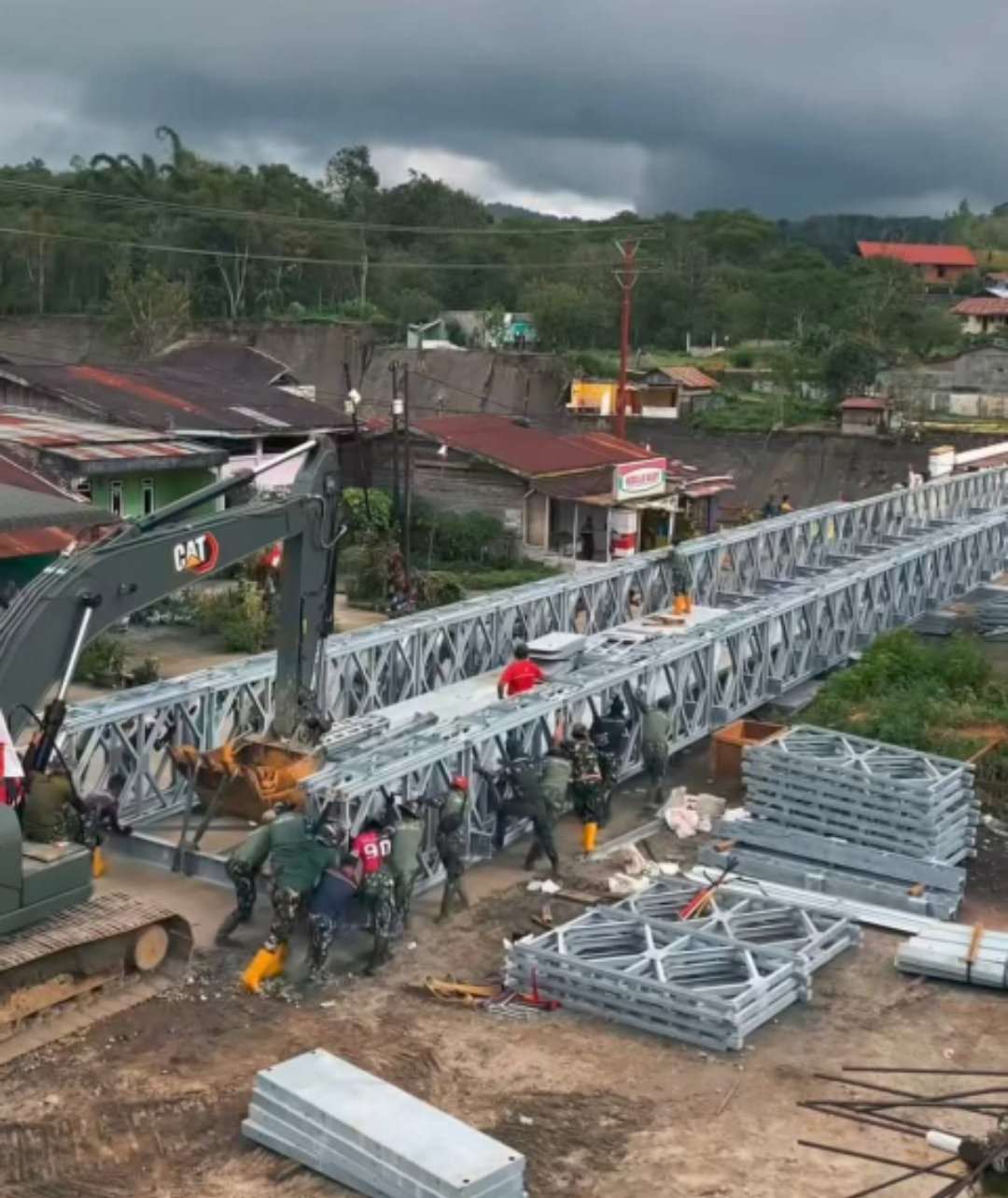 Pemasangan Jembatan Bailey dilakukan oleh tim gabungan dengan penuh kehati-hatian dan kecepatan, mengingat kondisi cuaca serta medan yang masih cukup menantang. Jembatan jenis Bailey dipilih karena bersifat modular, mudah dirakit, dan sangat efektif digunakan dalam situasi tanggap darurat bencana.