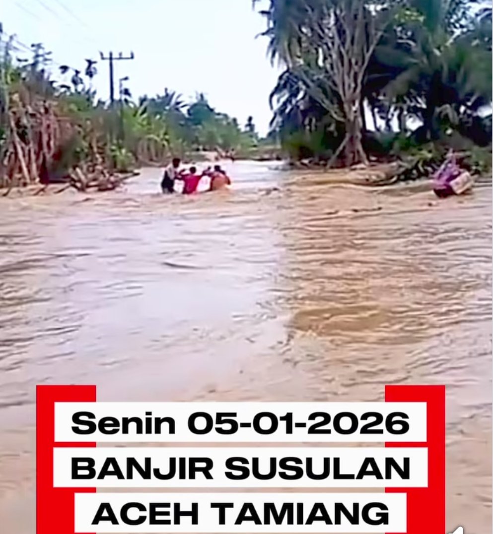 ACEH TAMIANG – Banjir susulan kembali melanda Kabupaten Aceh Tamiang pada Senin sore, 5 Januari 2026. Meluapnya debit air sungai akibat curah hujan yang masih tinggi membuat sejumlah wilayah, khususnya di sekitar Kota Kuala Simpang dan daerah bantaran sungai, kembali terendam air.