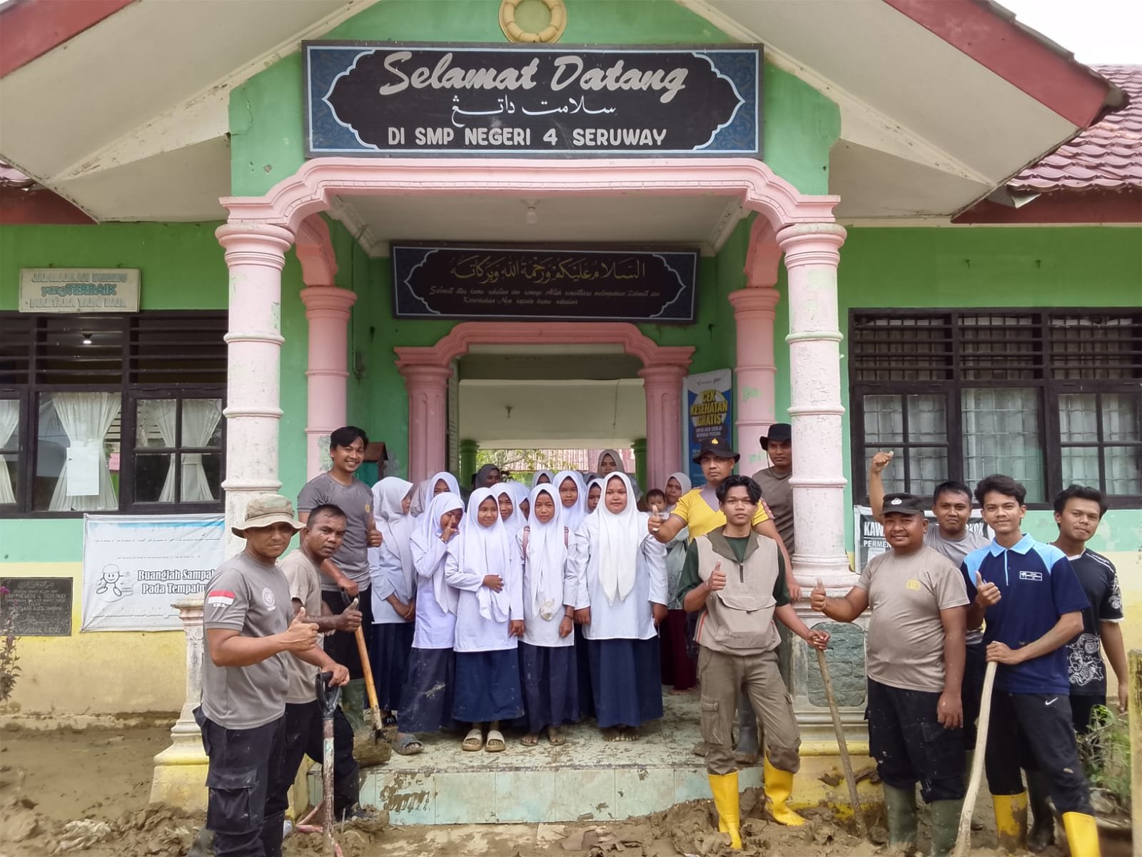 Pembersihan dilakukan sebagai bagian dari upaya pemulihan pascabencana agar fasilitas pendidikan dapat kembali difungsikan.