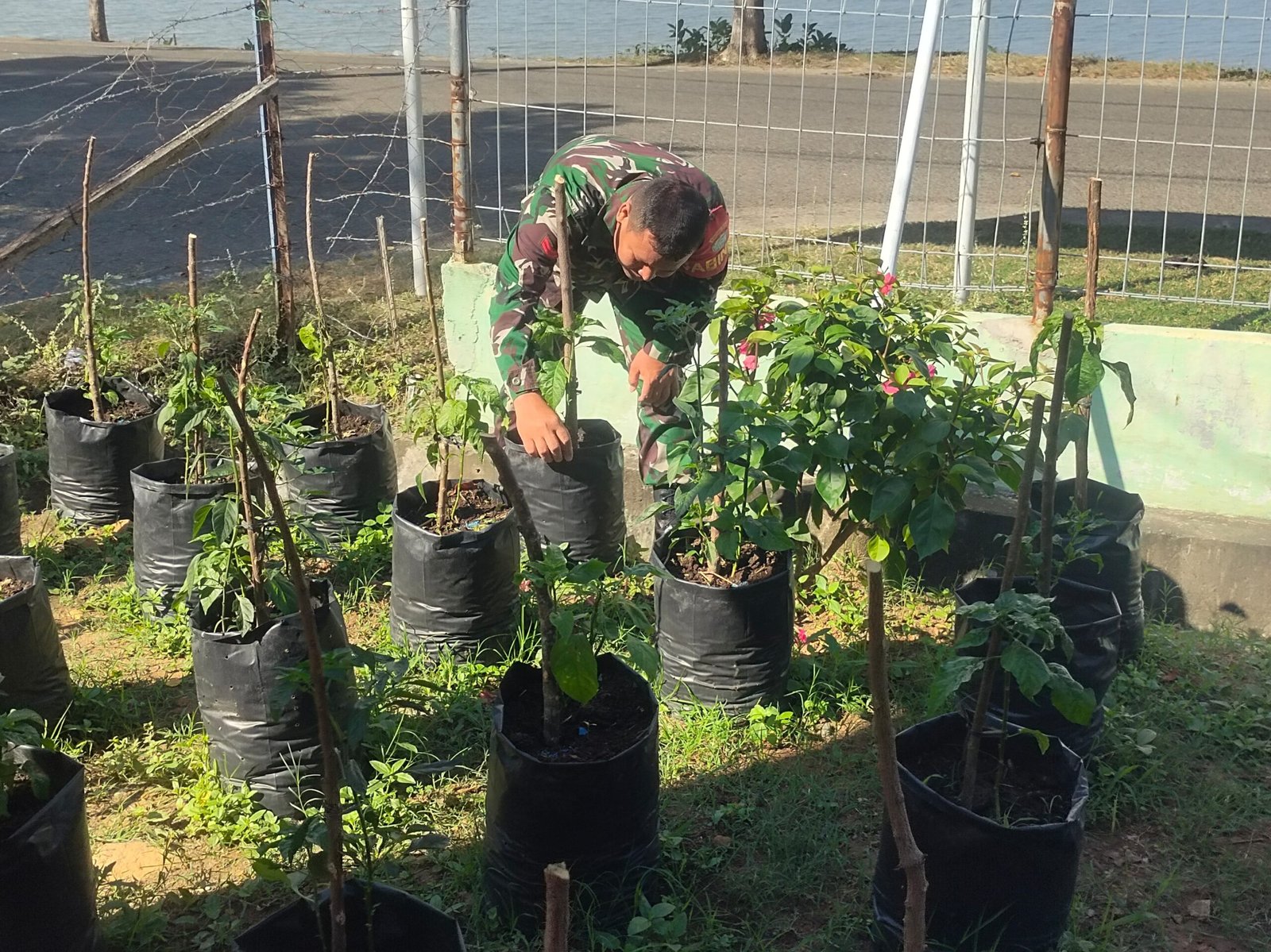 Salah satu personel Koramil 25/SK menyampaikan bahwa perawatan kebun merupakan bagian dari pembinaan satuan yang tidak hanya menanamkan kepedulian terhadap kebersihan lingkungan, tetapi juga membangun semangat kebersamaan antaranggota.