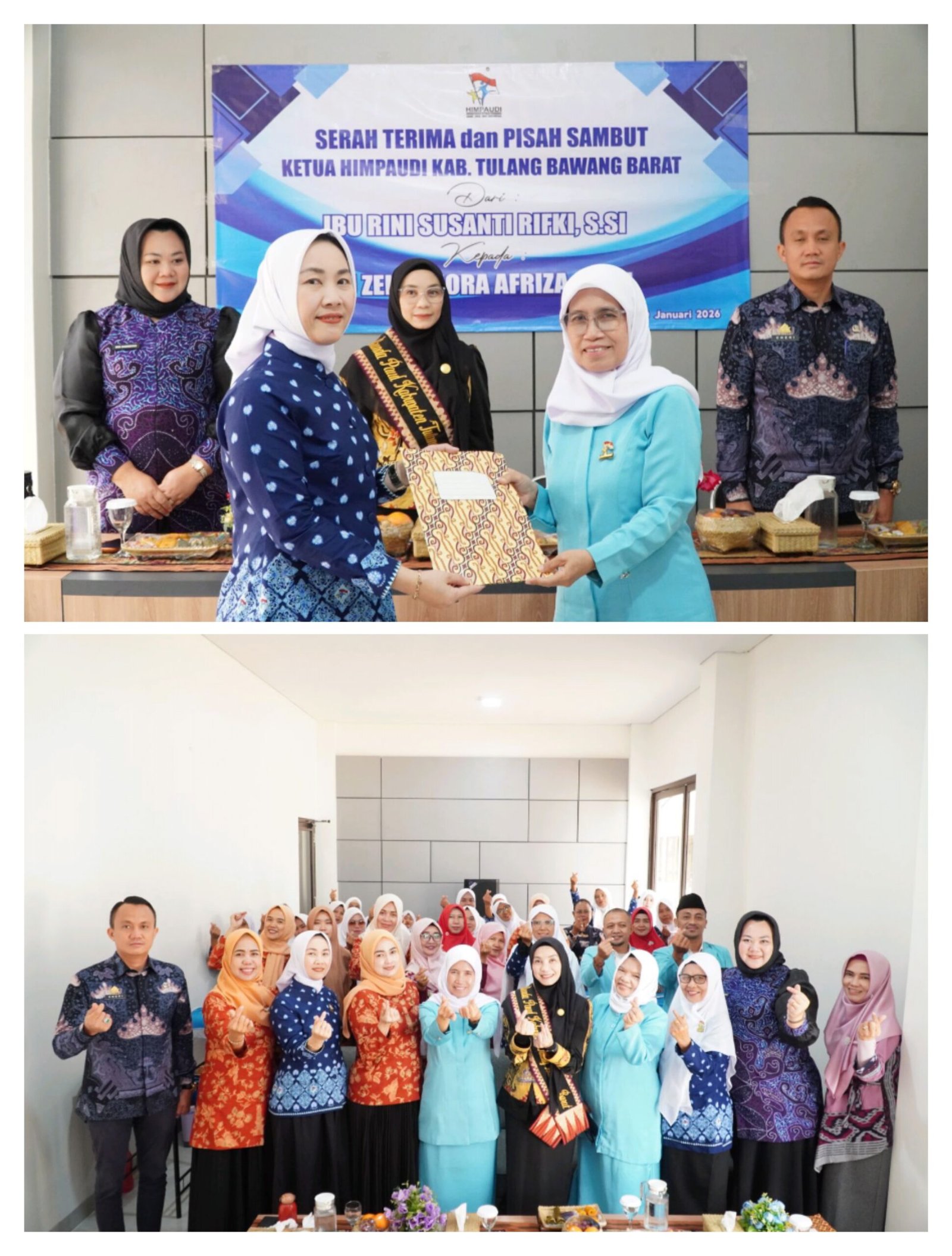 DAILY MAIL INDONESIA.COM—Tulang Bawang Barat,  Bunda PAUD Kabupaten Tulang Bawang Barat, Ny. Novianti Novriwan, didampingi Ketua I Tim Penggerak Pemberdayaan dan Kesejahteraan Keluarga Kabupaten Tulang Bawang Barat, Ny. Ana Nadirsyah, menghadiri acara serah terima jabatan Ketua Pengurus Daerah Himpunan Pendidik dan Tenaga Kependidikan Anak Usia Dini Indonesia Kabupaten Tulang Bawang Barat. Kegiatan berlangsung di Aula Dinas Pendidikan dan Kebudayaan Kompleks Uluan Nughik, Jumat (30 Januari 2026).