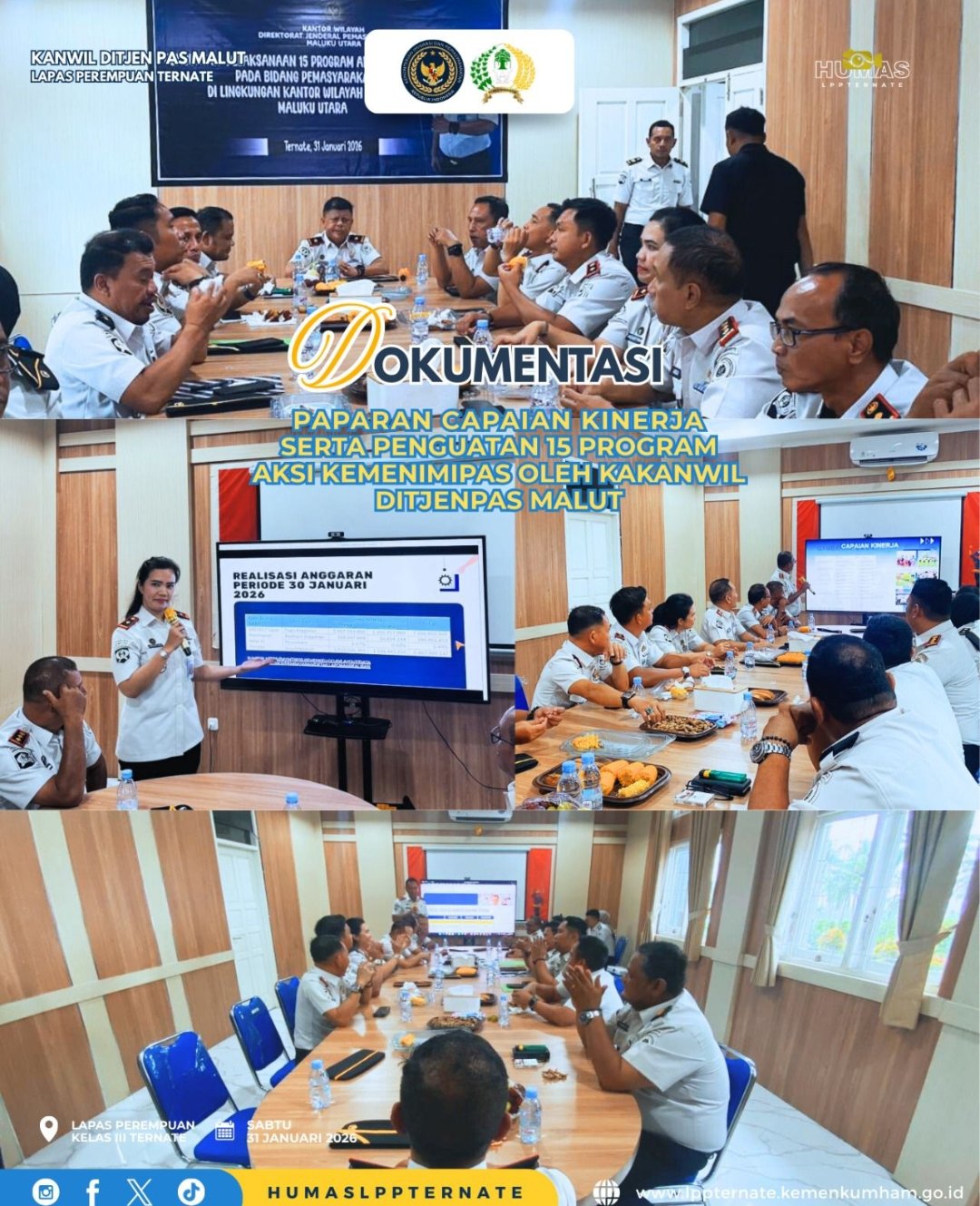 Dengan adanya paparan capaian kinerja ini, diharapkan seluruh unit kerja pemasyarakatan di Maluku Utara dapat terus meningkatkan performa, memperkuat tata kelola, serta menghadirkan pelayanan yang semakin profesional dan berkeadilan.(**)