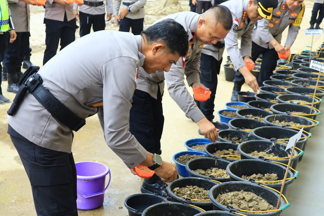 Aceh Tamiang – Kapolda Aceh Irjen Pol. Drs. Marzuki Ali Basyah, M.M., memperkenalkan inovasi pertanian sederhana berupa penyemaian bibit padi menggunakan ember atau konsep sawah portabel dengan memanfaatkan lumpur sisa banjir. Inovasi ini dihadirkan sebagai solusi bagi masyarakat terdampak bencana agar tetap produktif sekaligus membantu pembersihan lingkungan pascabanjir.