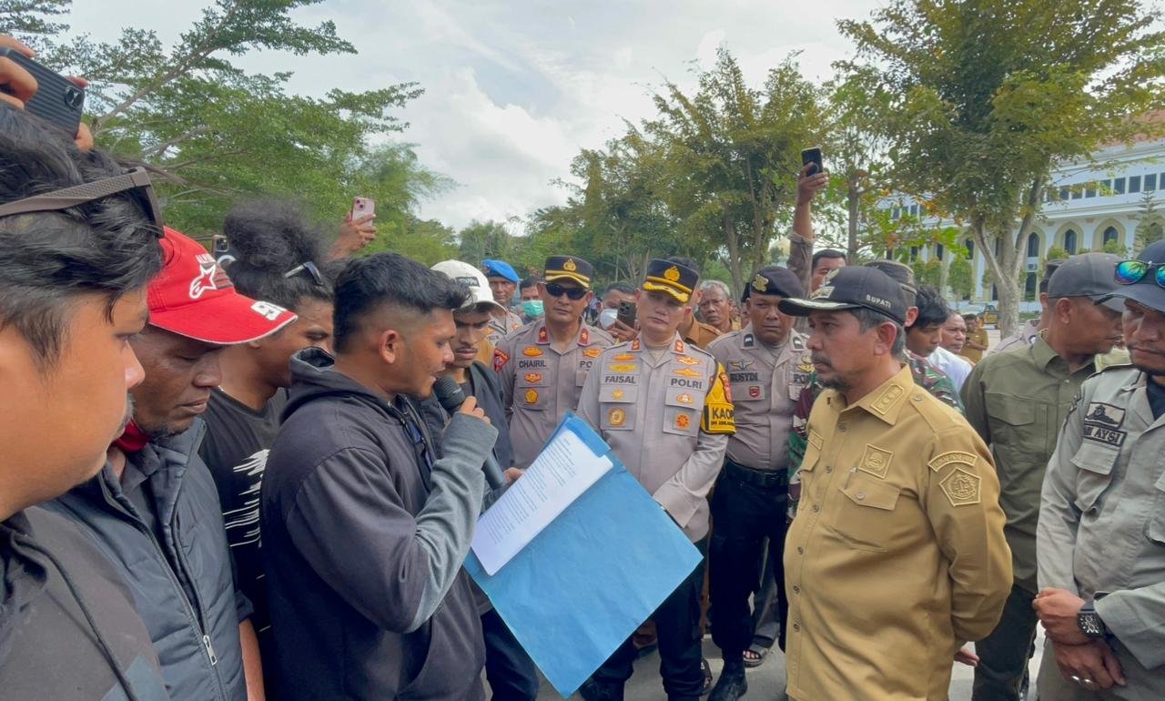 Meureudu – Kapolres Pidie Jaya AKBP Ahmad Faisal Pasaribu memimpin langsung pengamanan dan pelayanan aksi damai yang dilakukan oleh Aliansi Masyarakat Pidie Jaya di Komplek Kantor Bupati Pidie Jaya, Gampong Mayang Cut, Kecamatan Meureudu, Kabupaten Pidie Jaya, Senin 9 Februari 2026.