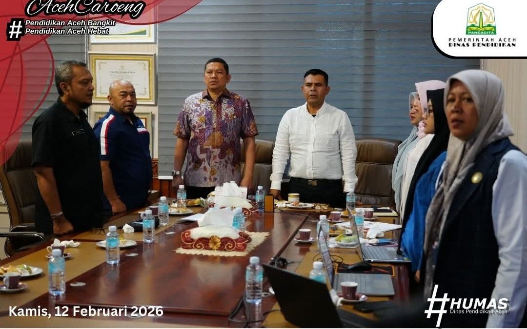 Banda Aceh – Pelaksana Tugas (Plt.) Kepala Dinas Pendidikan Aceh, Murthalamuddin, S.Pd., MSP, bersama Kepala Badan Narkotika Nasional Provinsi (BNNP) Aceh, Brigjen Pol. Dr. Dedy Tabrani, S.I.K., M.Si., mengikuti Zoom Launching Program Integrasi Kurikulum Anti Narkoba (IKAN), kolaborasi antara Badan Narkotika Nasional (BNN) Pusat dan Kementerian Pendidikan Dasar dan Menengah (Kemendikdasmen), Kamis, 12 Februari 2026.