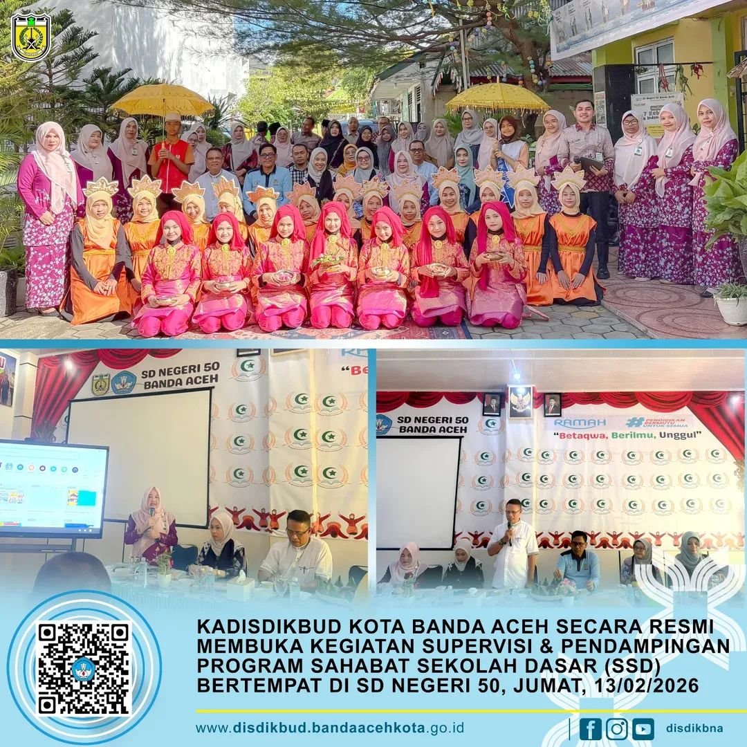Banda Aceh – Direktorat Sekolah Dasar Kemendikdasmen melaksanakan kegiatan supervisi dan pendampingan Program Sahabat Sekolah Dasar (SSD) di SD Negeri 50 Banda Aceh. Kegiatan ini menjadi bagian dari tindak lanjut pelaksanaan program tahun 2025 sekaligus langkah strategis dalam mempersiapkan implementasi SSD tahun 2026, Jum’at, 13 Februari 2026.