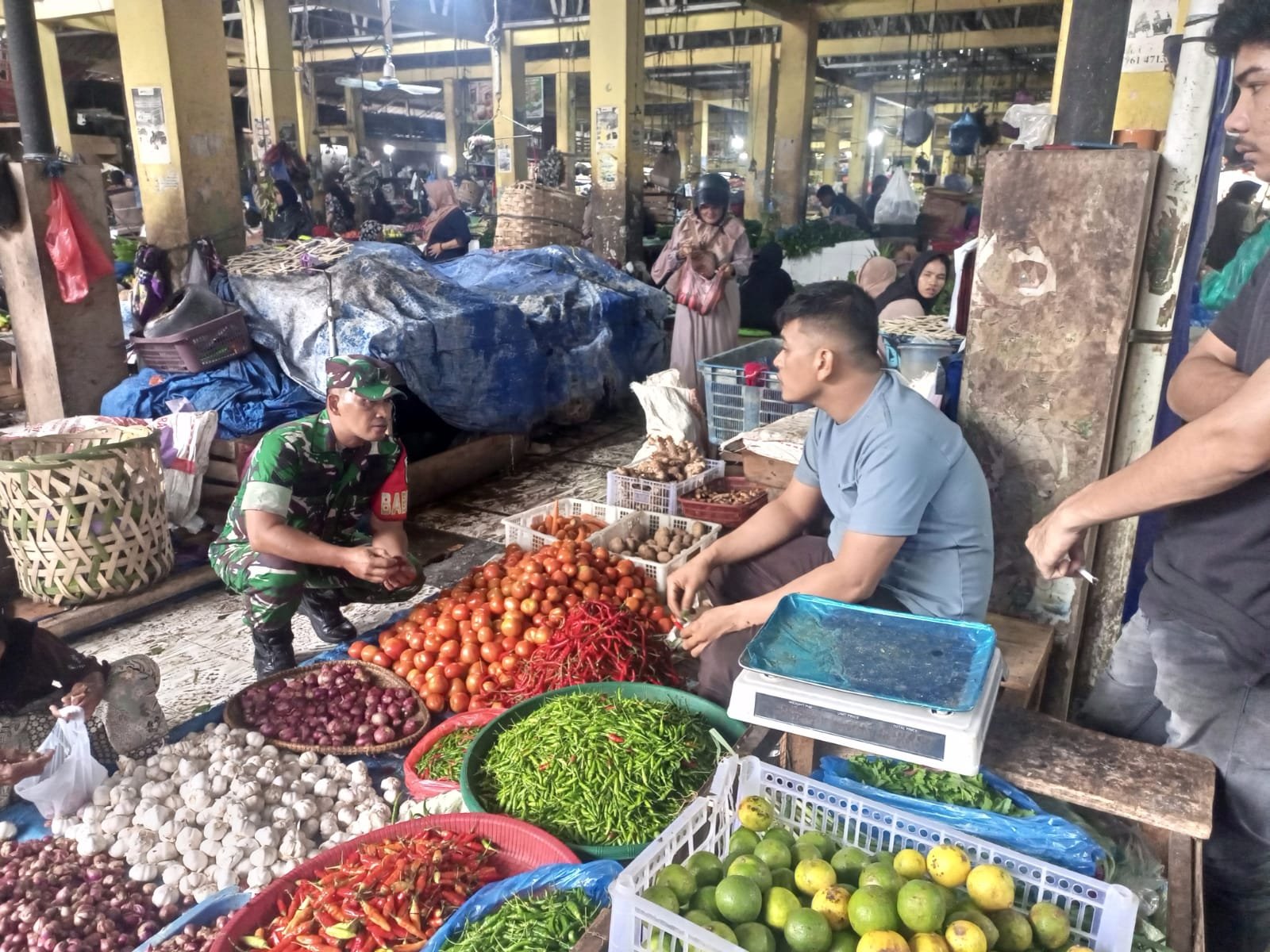 H-1 Ramadhan 1447 H, Babinsa Monitoring Harga Sembako di Pasar Pagi