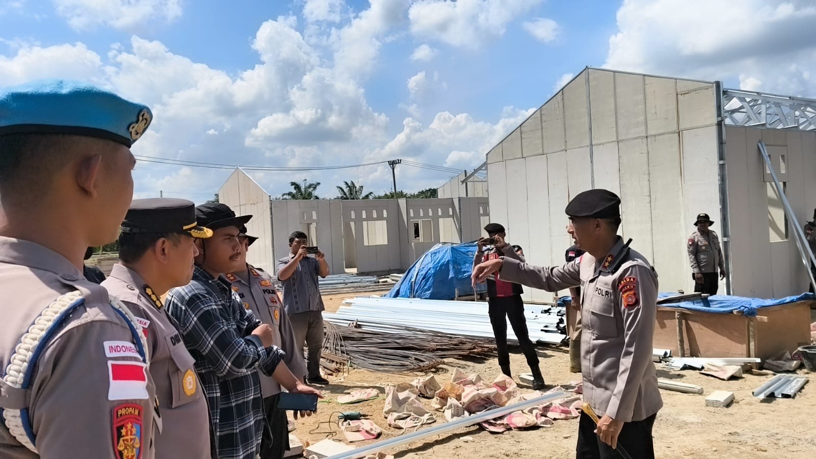 Selanjutnya, Kapolda Aceh beserta rombongan meninjau langsung pembangunan hunian tetap guna memastikan progres pengerjaan di lapangan.